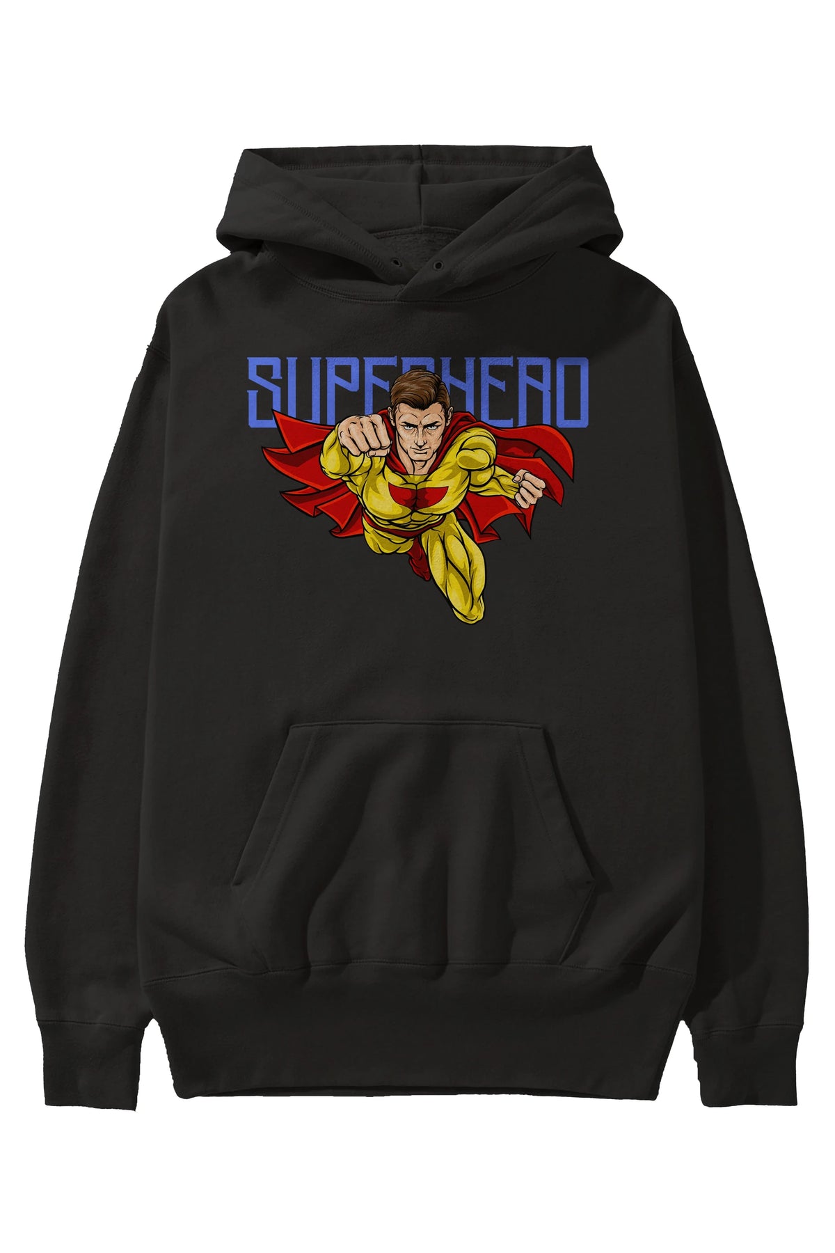 Super Hero Ön Baskılı Oversize Hoodie Kapüşonlu Sweatshirt Erkek Kadın Unisex