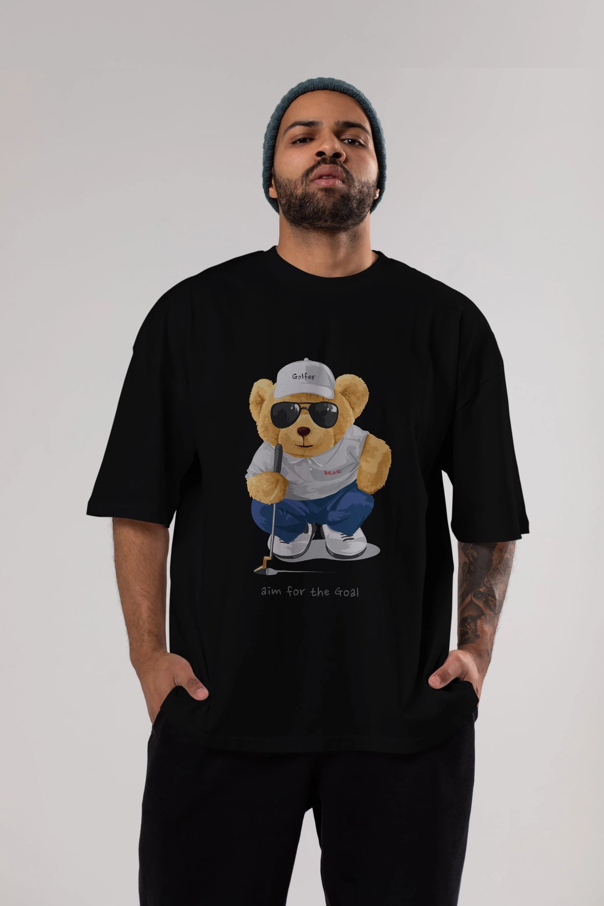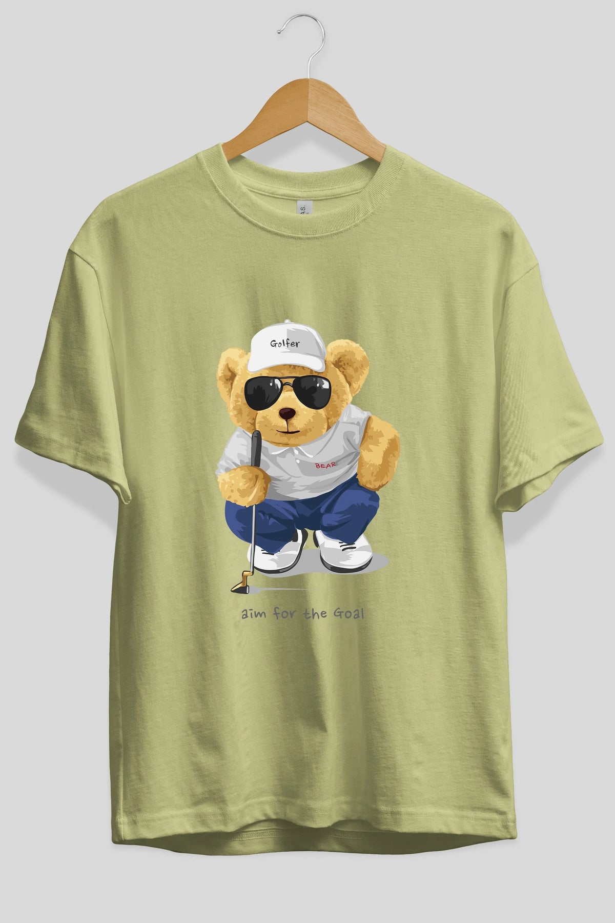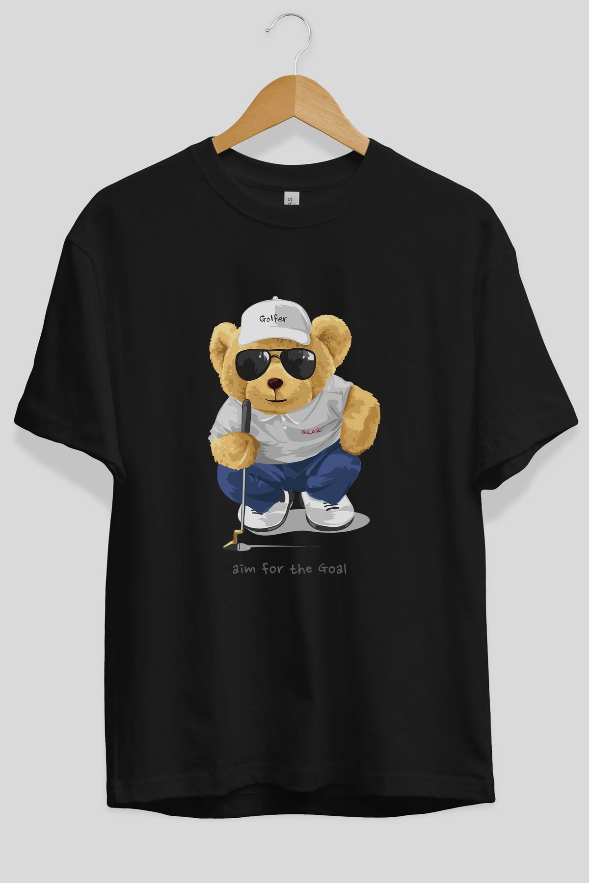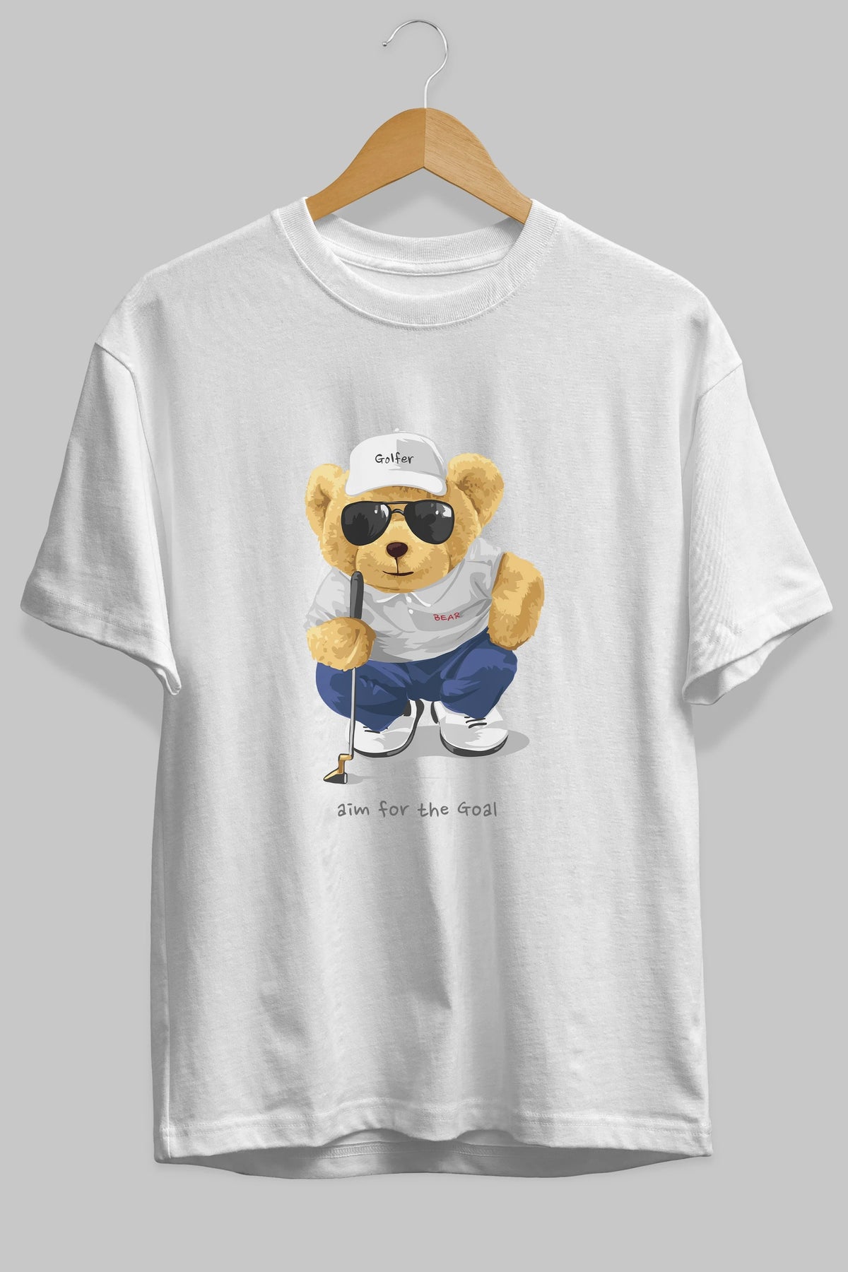 Teddy Bear Golfer Ön Baskılı Oversize t-shirt Erkek Kadın Unisex %100 Pamuk
