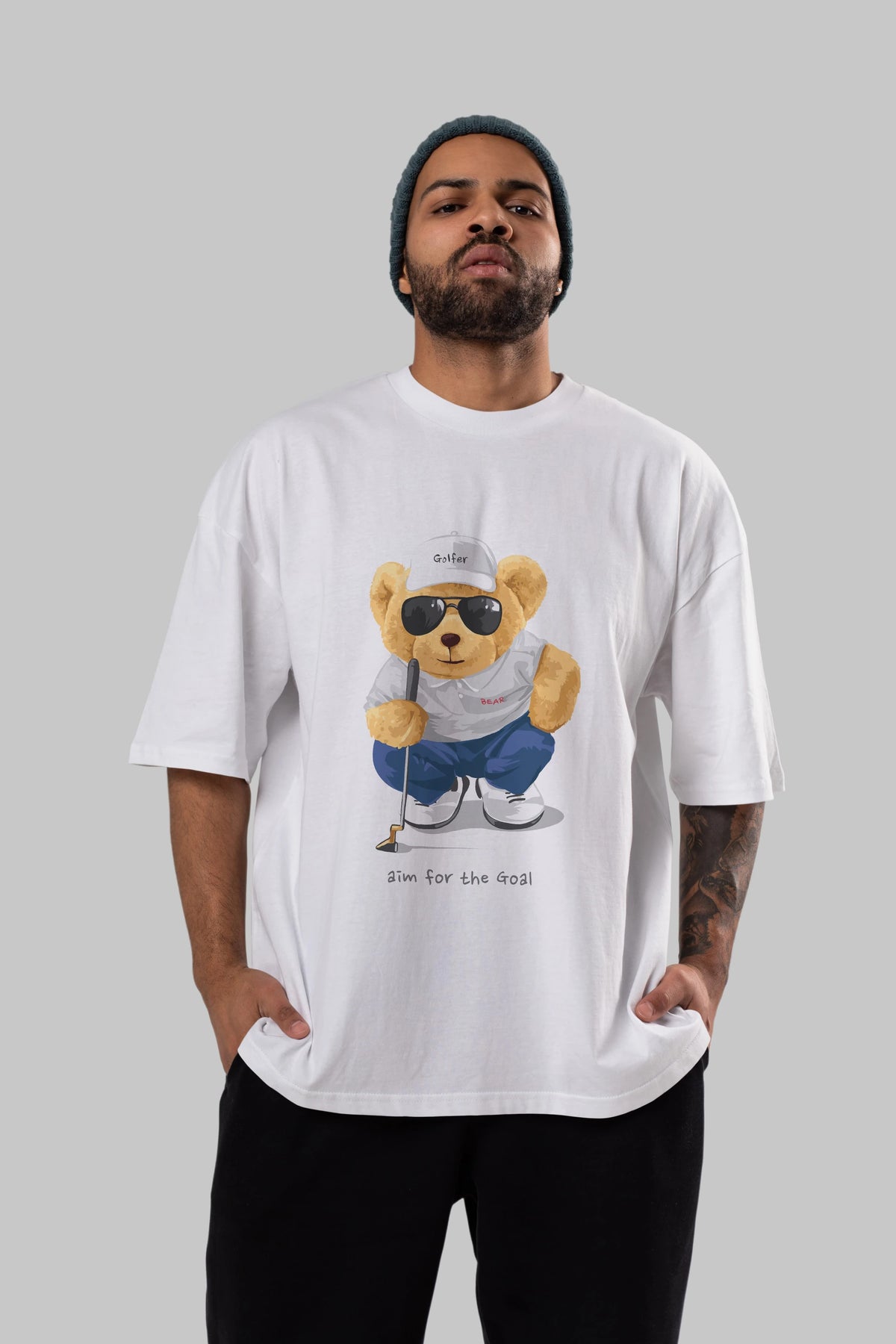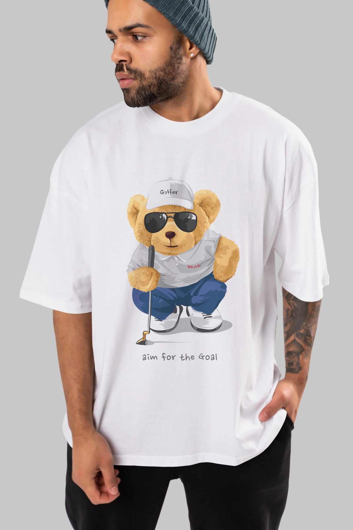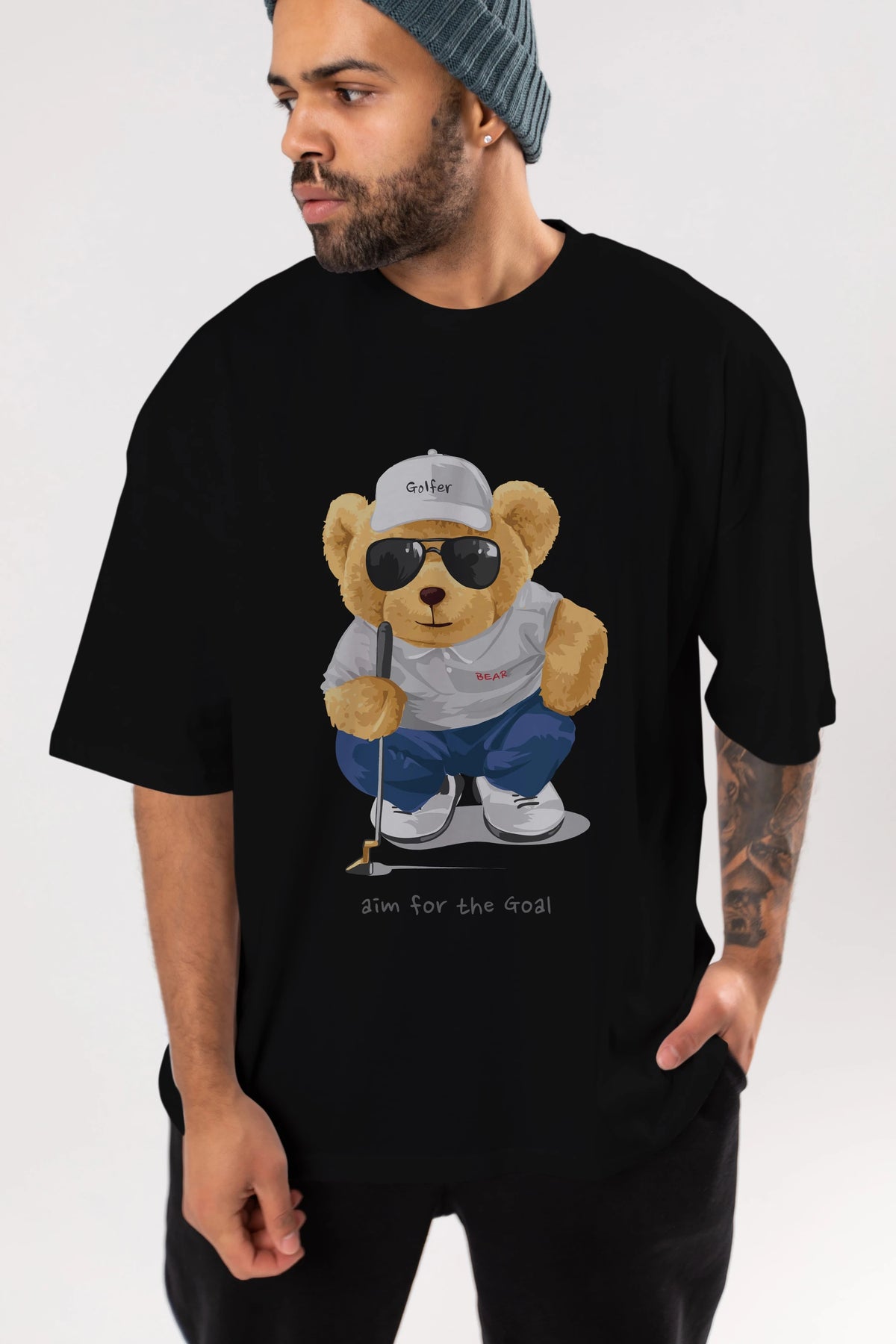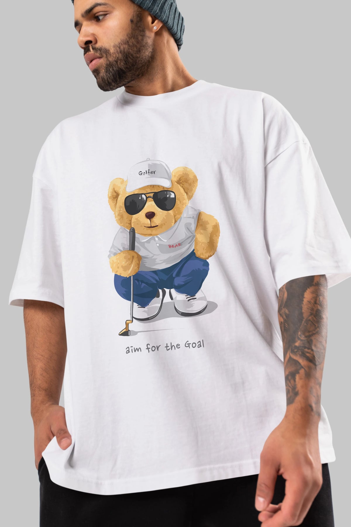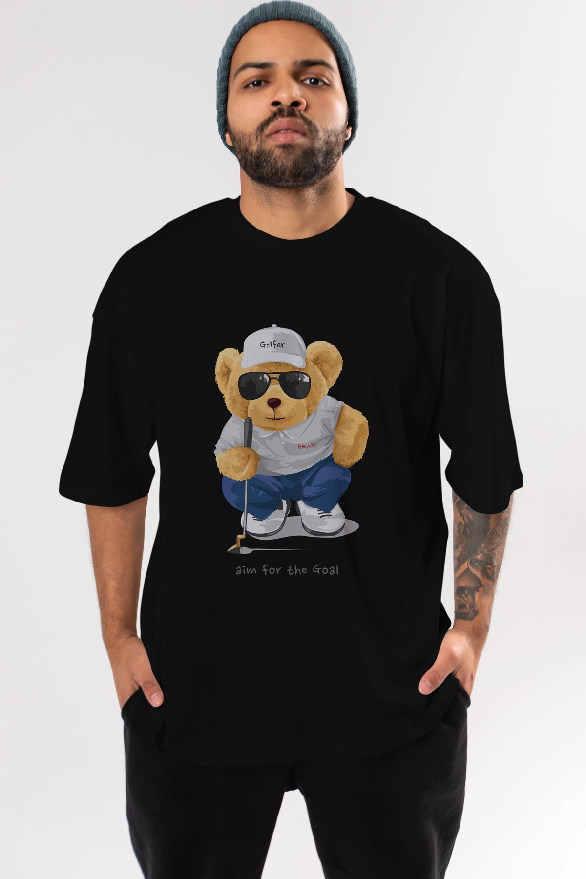 Teddy Bear Golfer Ön Baskılı Oversize t-shirt Erkek Kadın Unisex %100 Pamuk