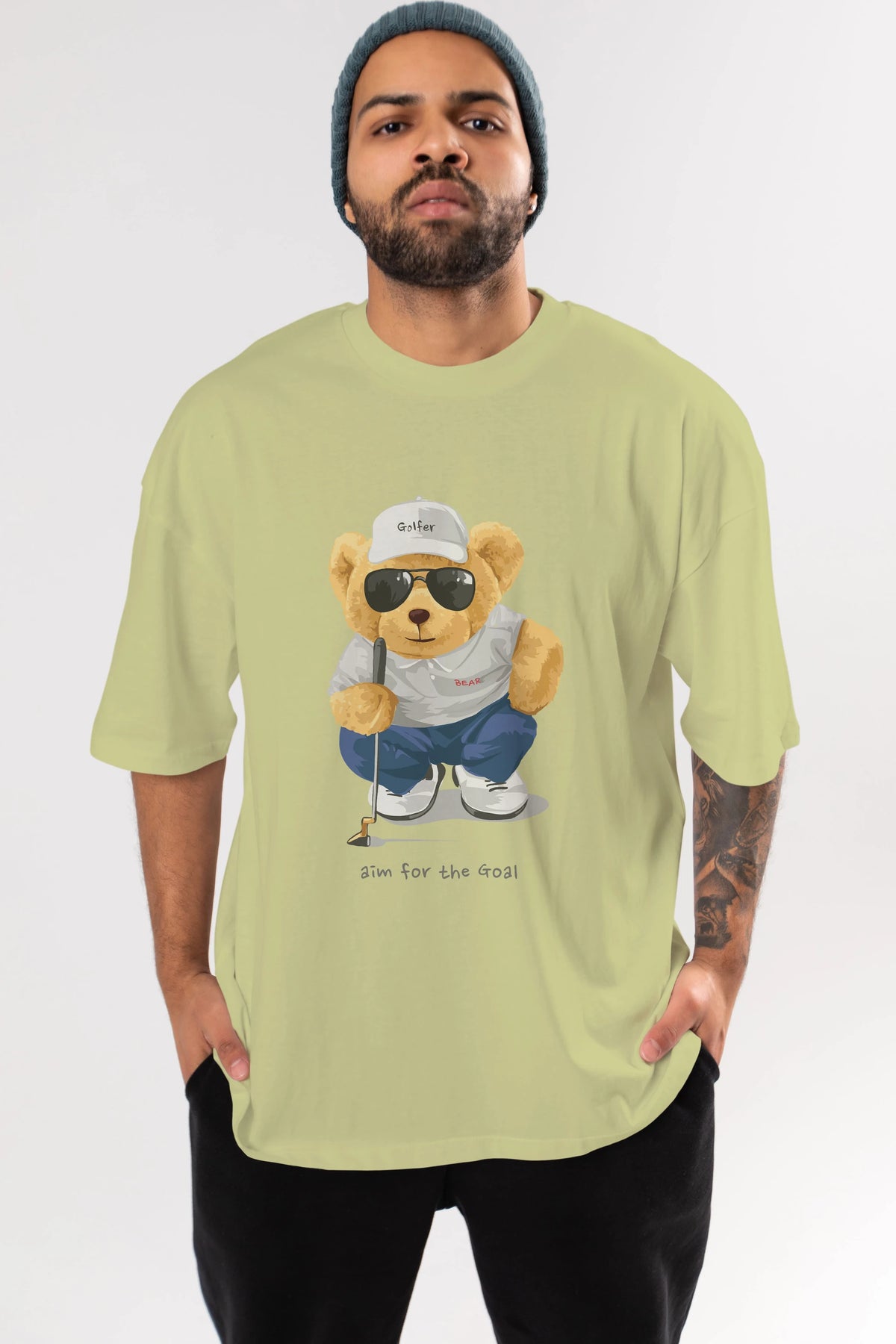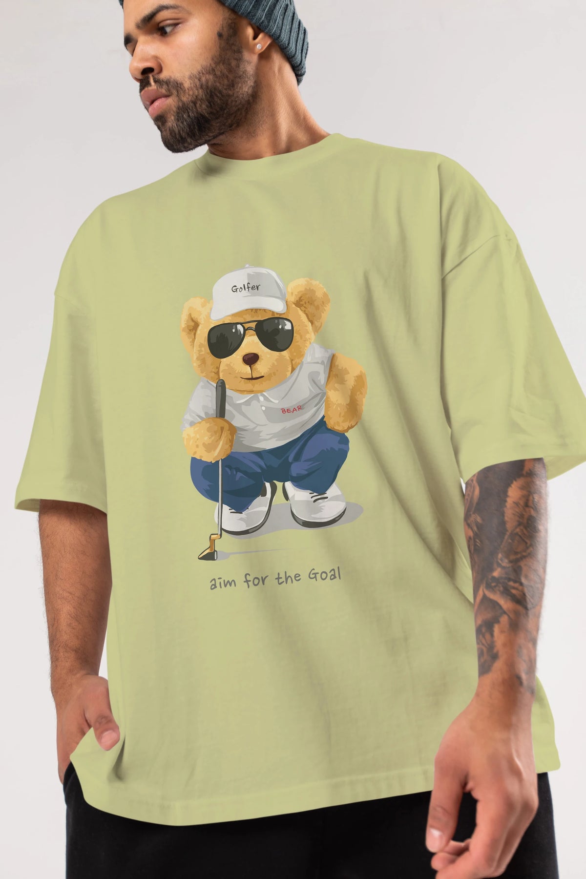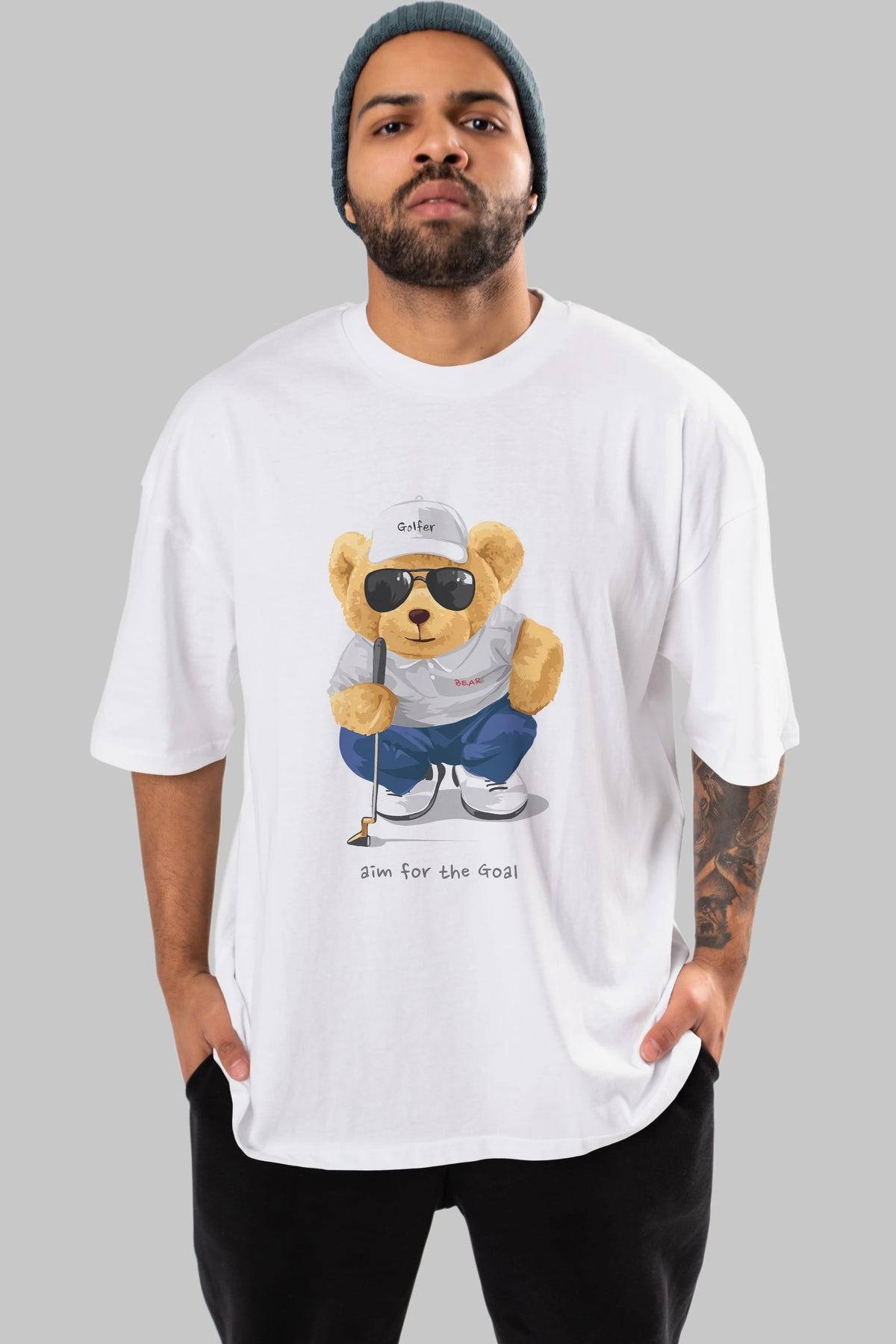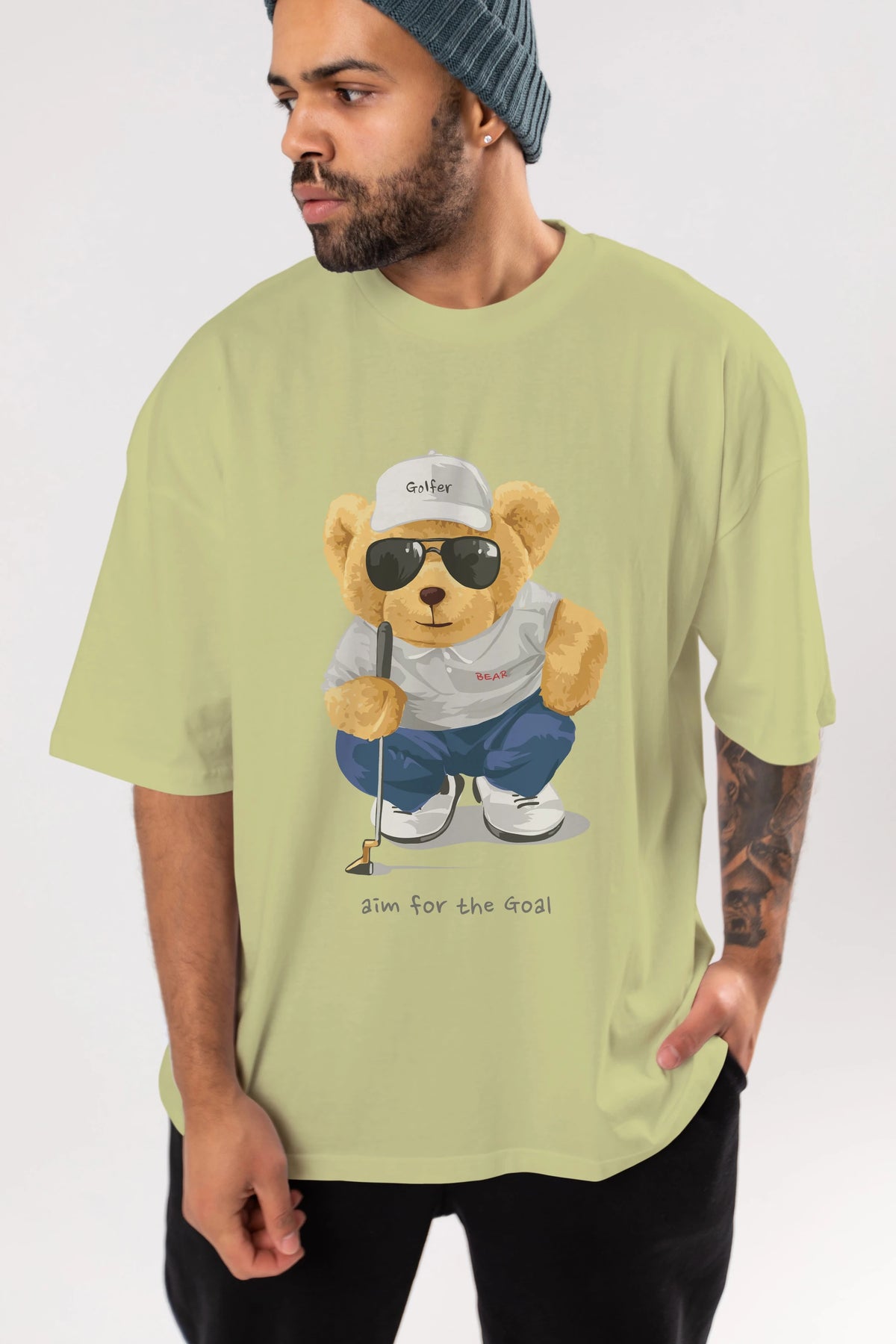 Teddy Bear Golfer Ön Baskılı Oversize t-shirt Erkek Kadın Unisex %100 Pamuk