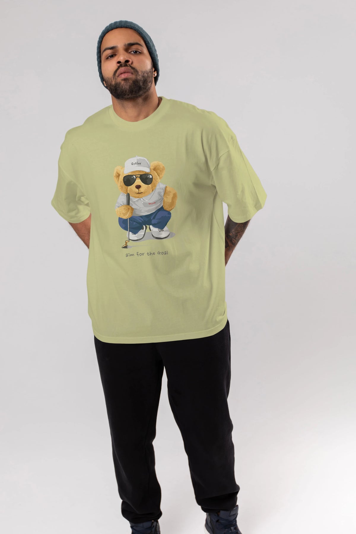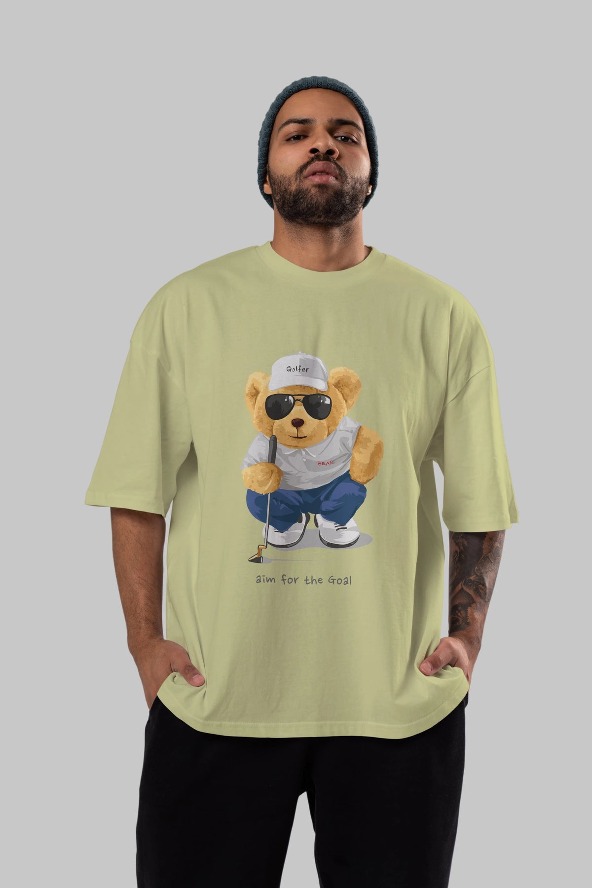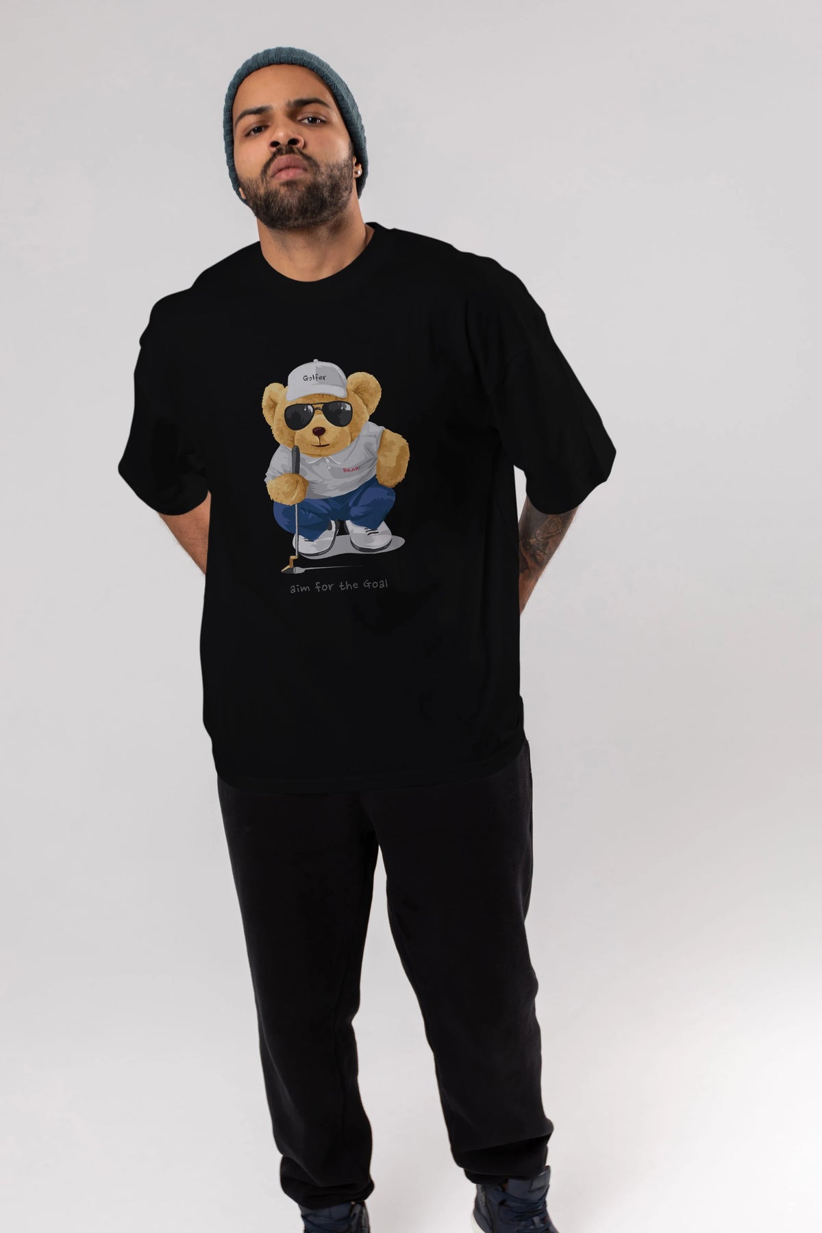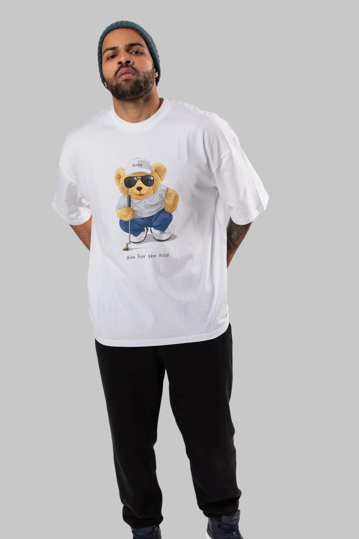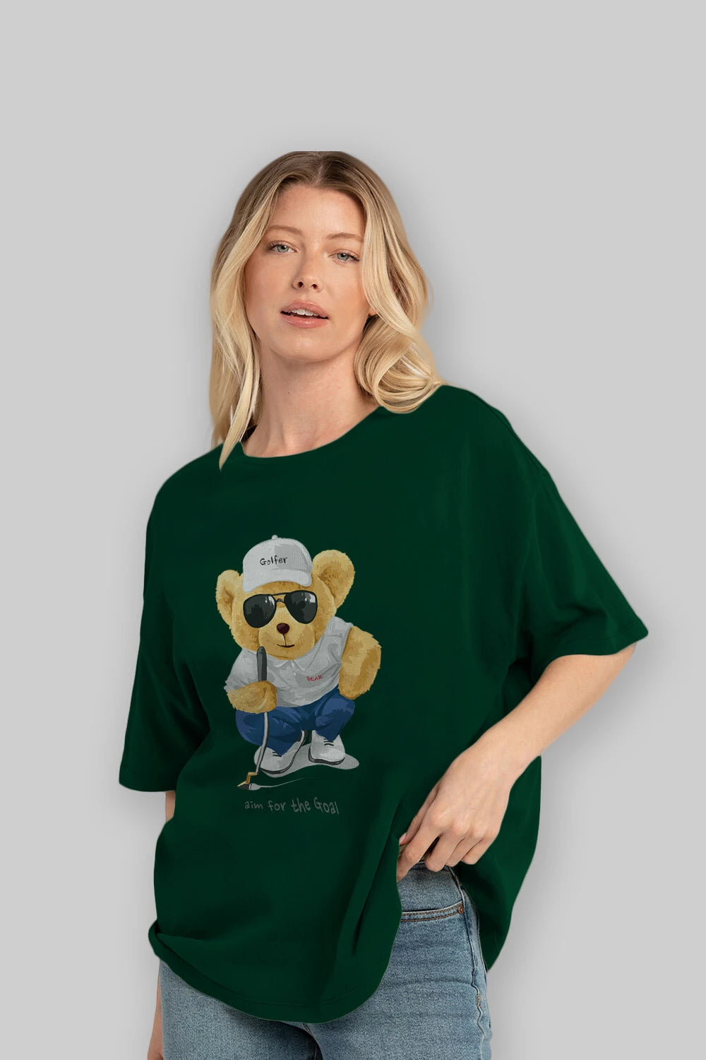 Teddy Bear Golfer Ön Baskılı Oversize t-shirt Erkek Kadın Unisex %100 Pamuk