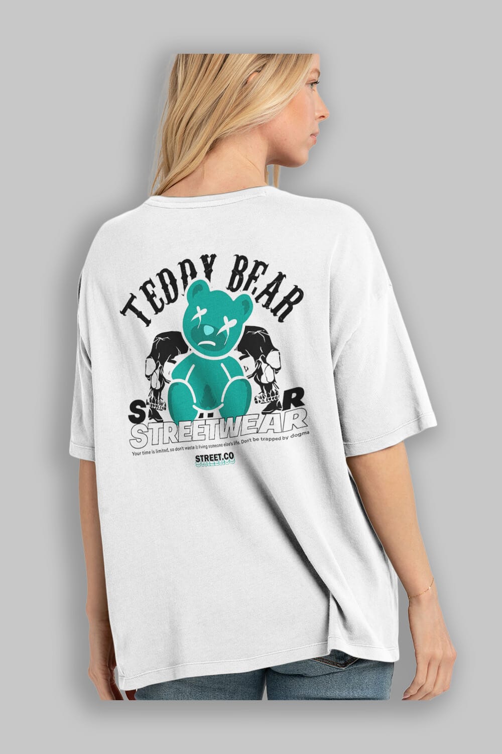 Teddy Bear Streetwear 2 Arka Baskılı Oversize t-shirt Erkek Kadın Unisex