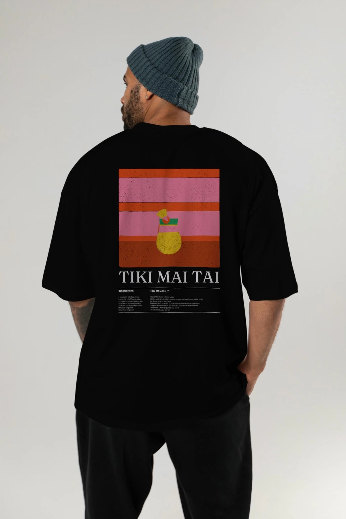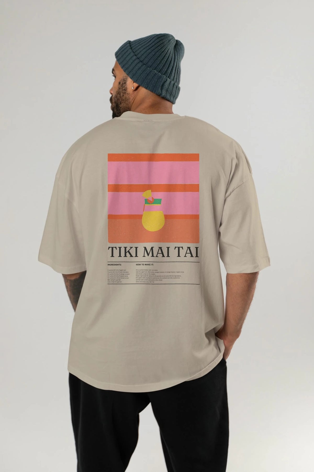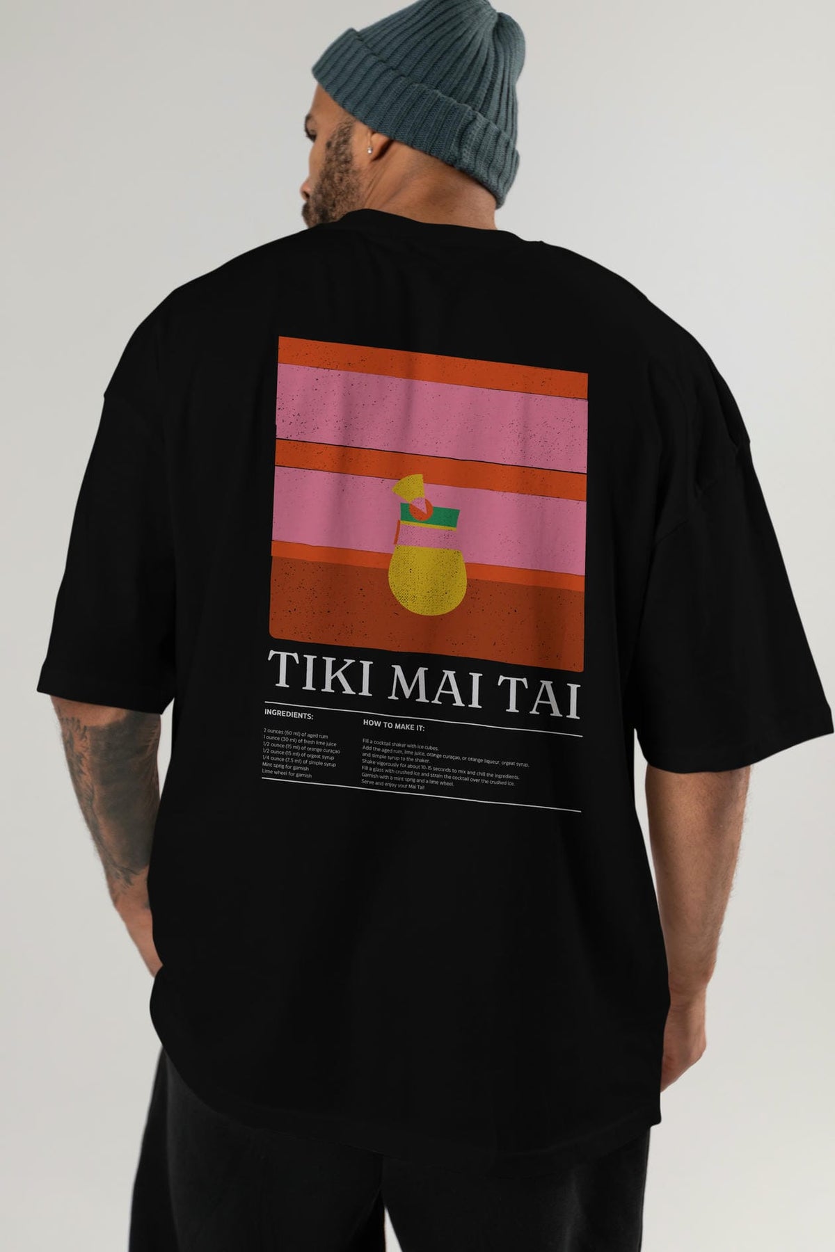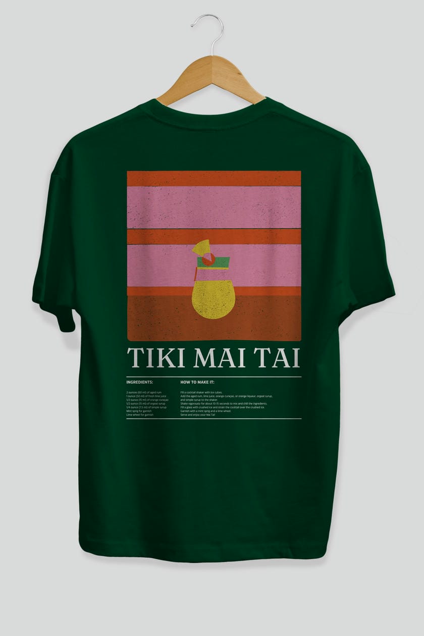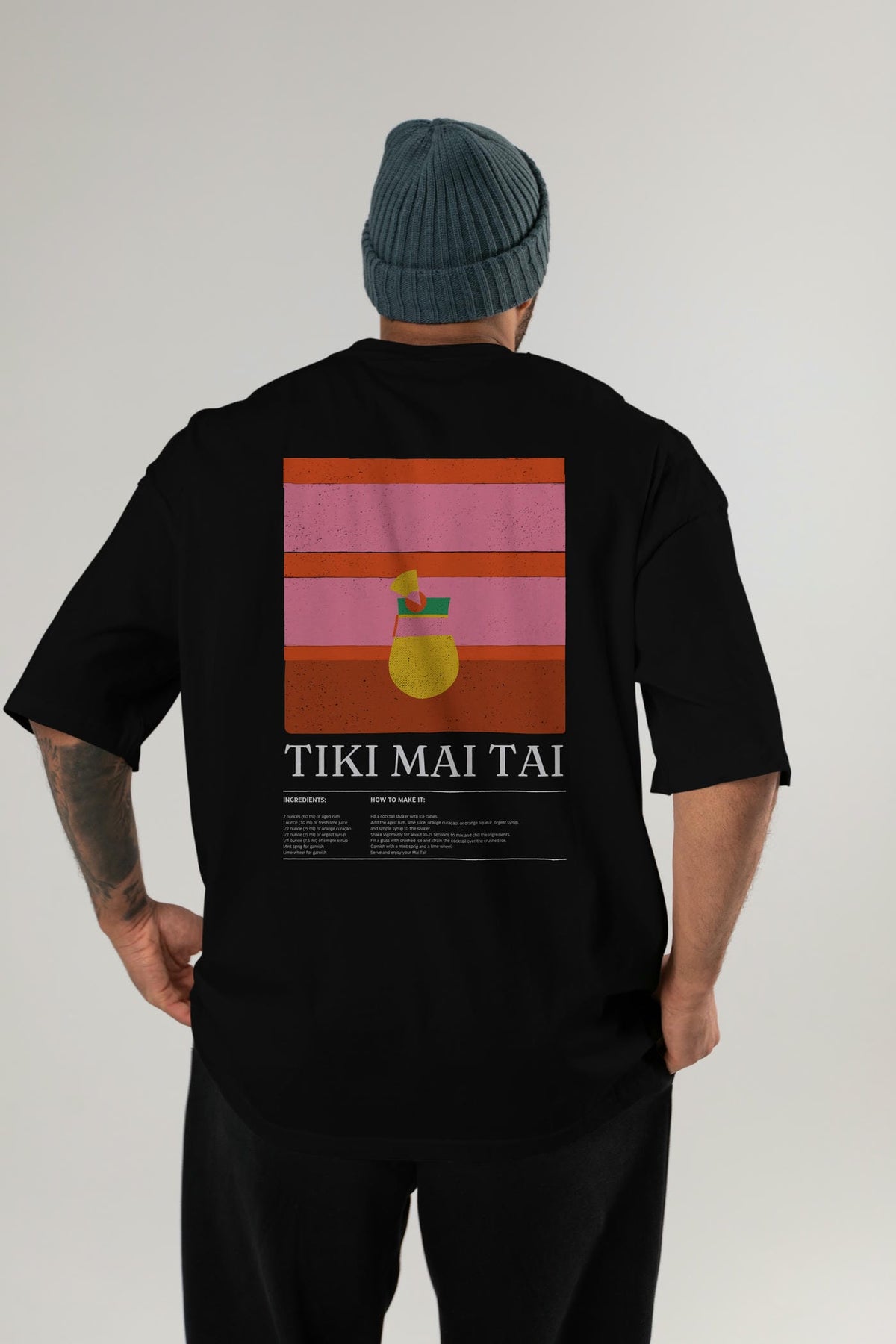 Tiki Mai Tai Kokteyl Serisi Arka Baskılı Oversize t-shirt Erkek Kadın %100 Pamuk Bisiklet Yaka tişort