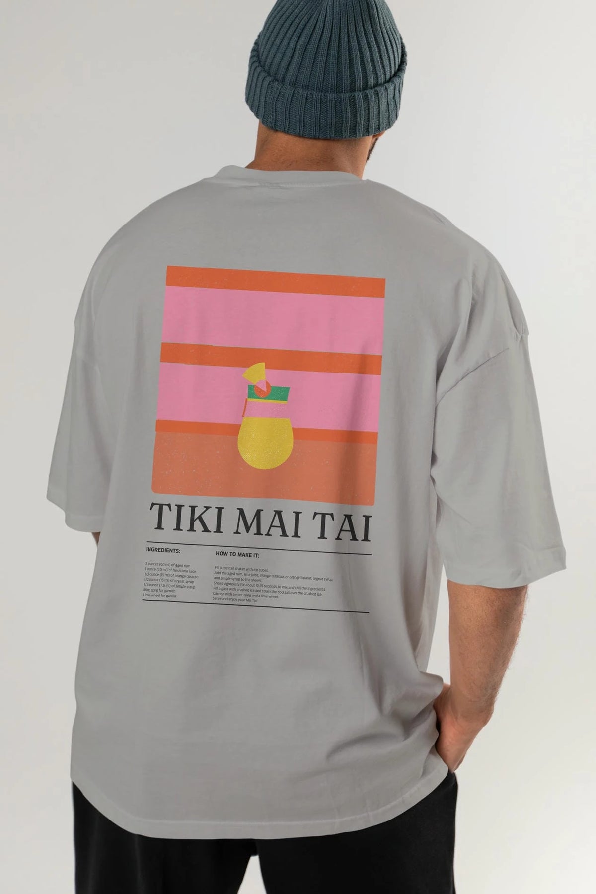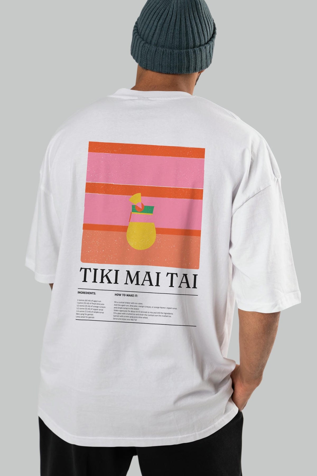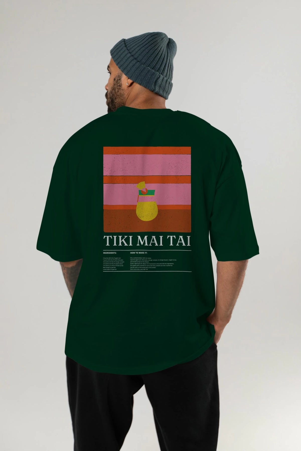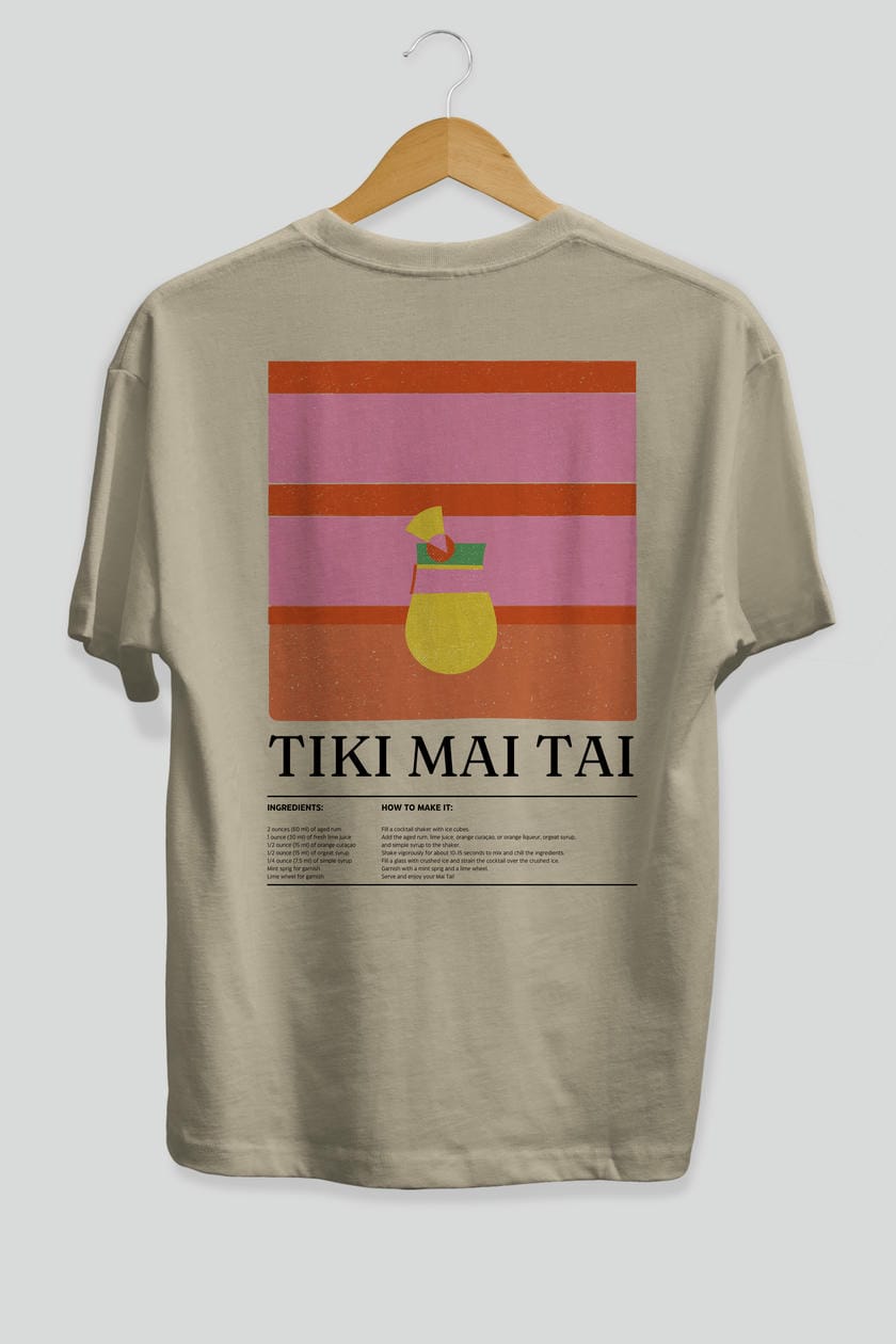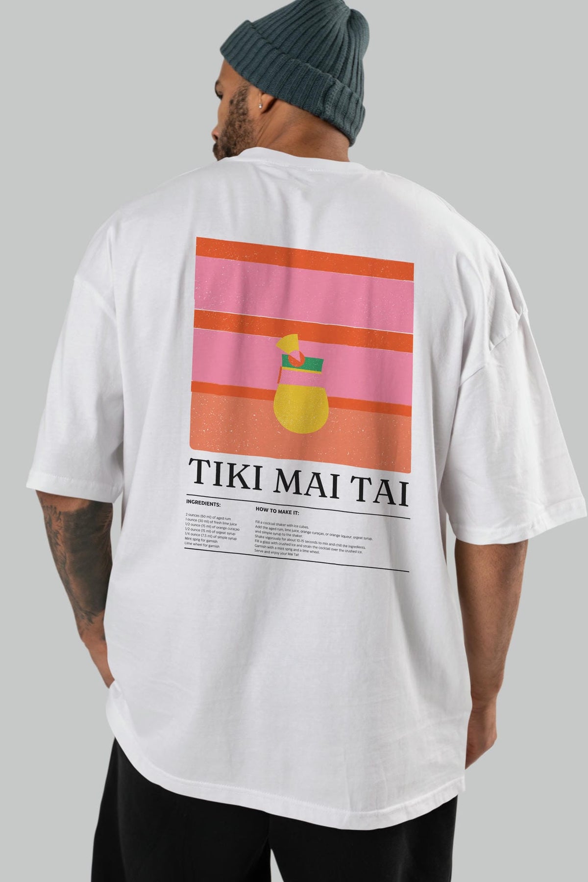 Tiki Mai Tai Kokteyl Serisi Arka Baskılı Oversize t-shirt Erkek Kadın %100 Pamuk Bisiklet Yaka tişort