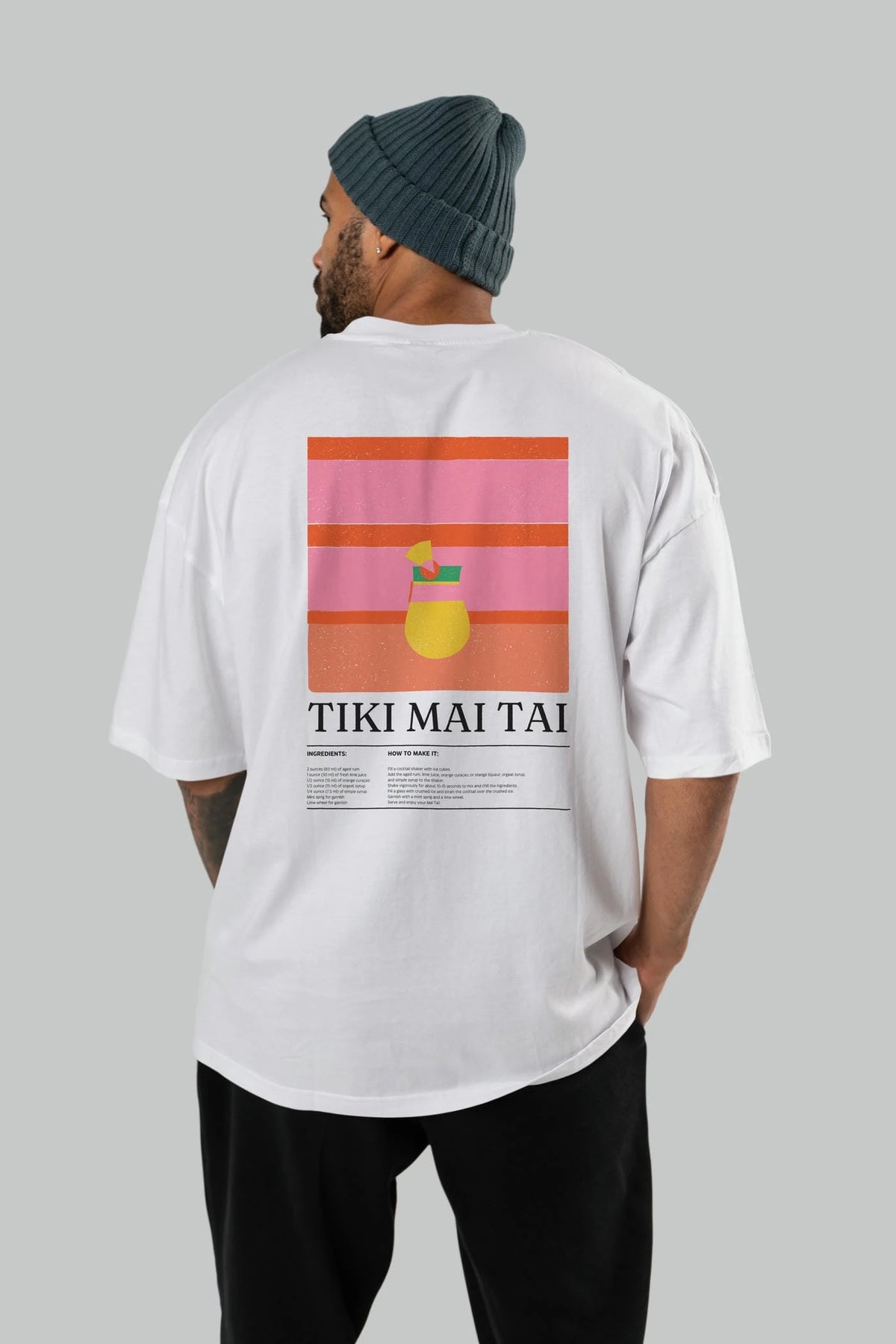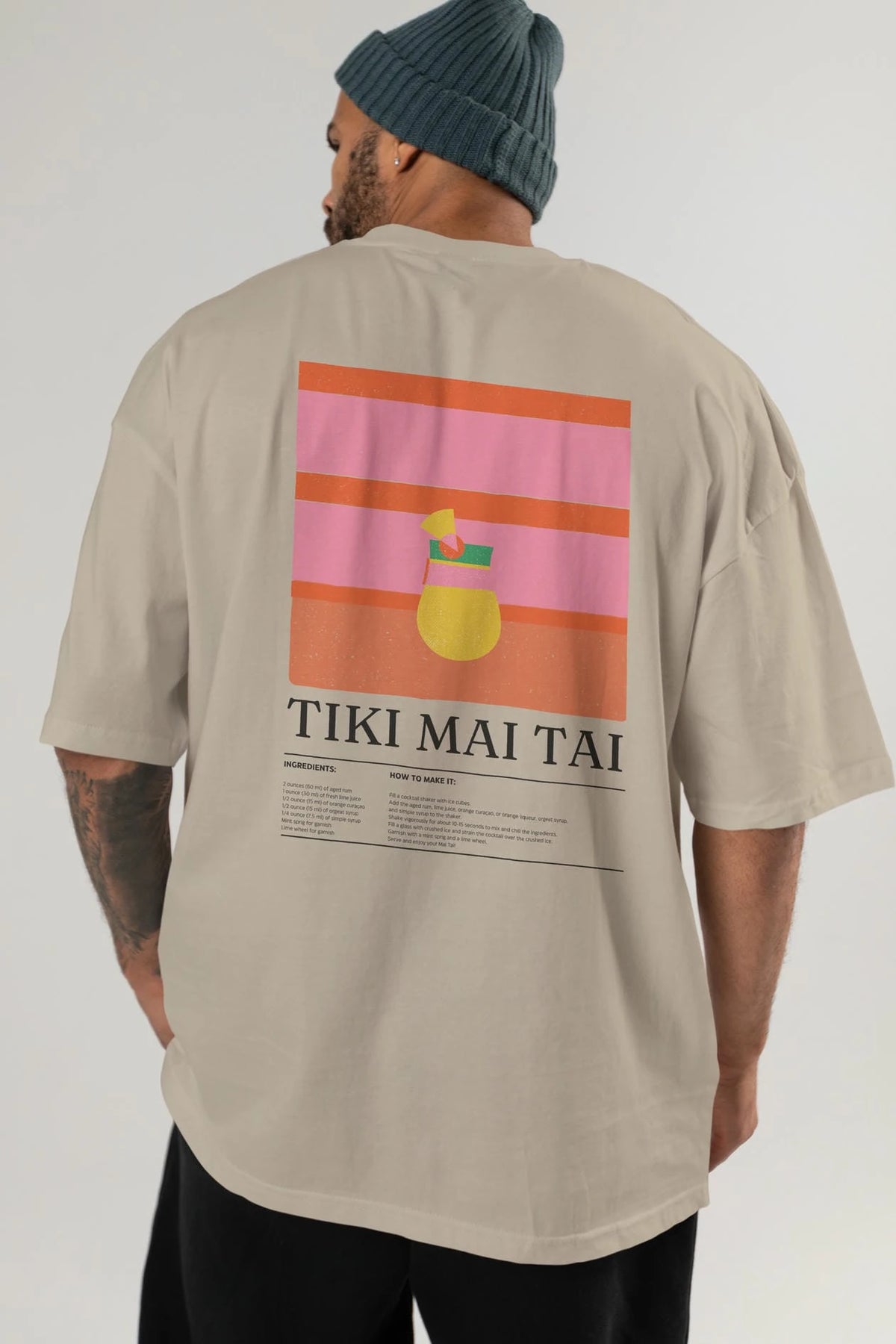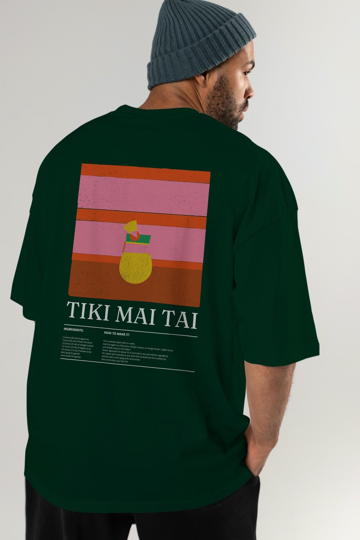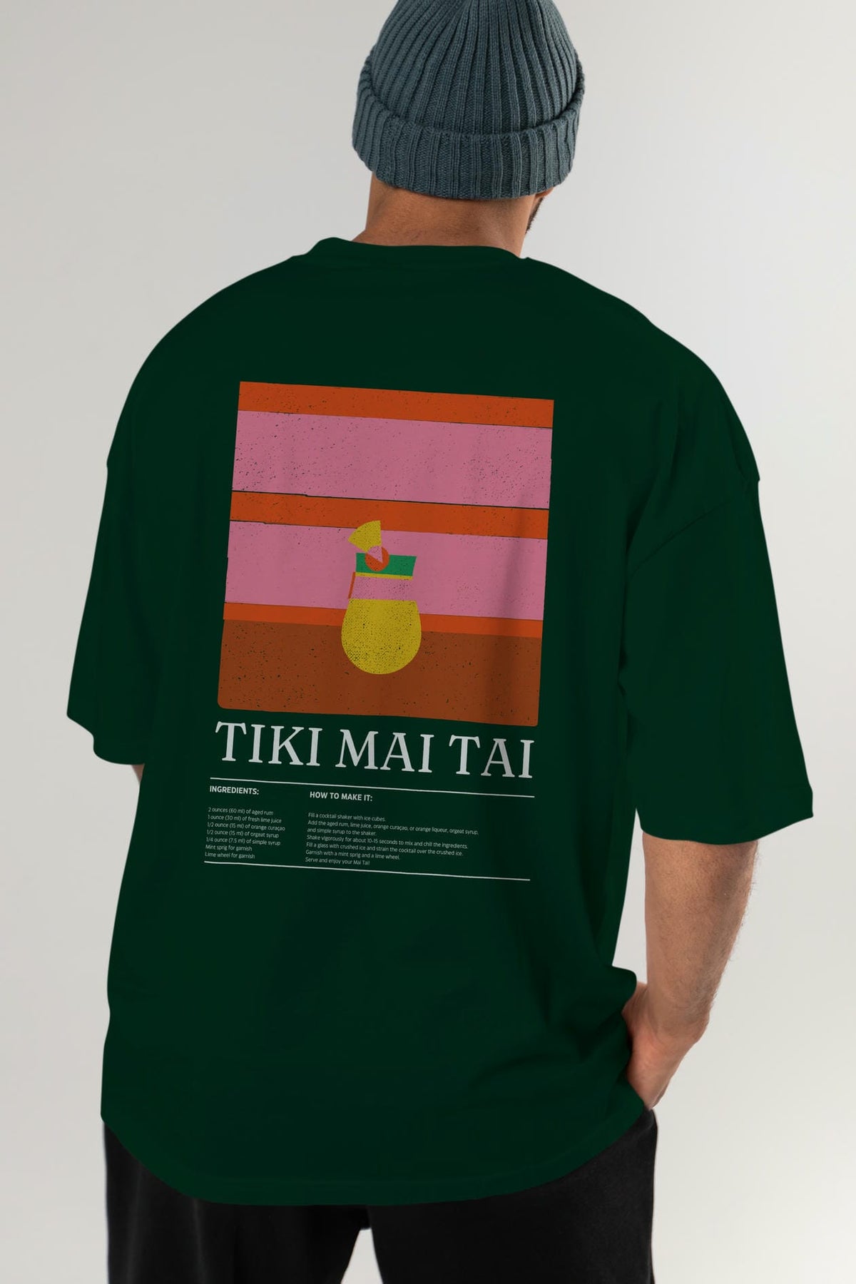 Tiki Mai Tai Kokteyl Serisi Arka Baskılı Oversize t-shirt Erkek Kadın %100 Pamuk Bisiklet Yaka tişort