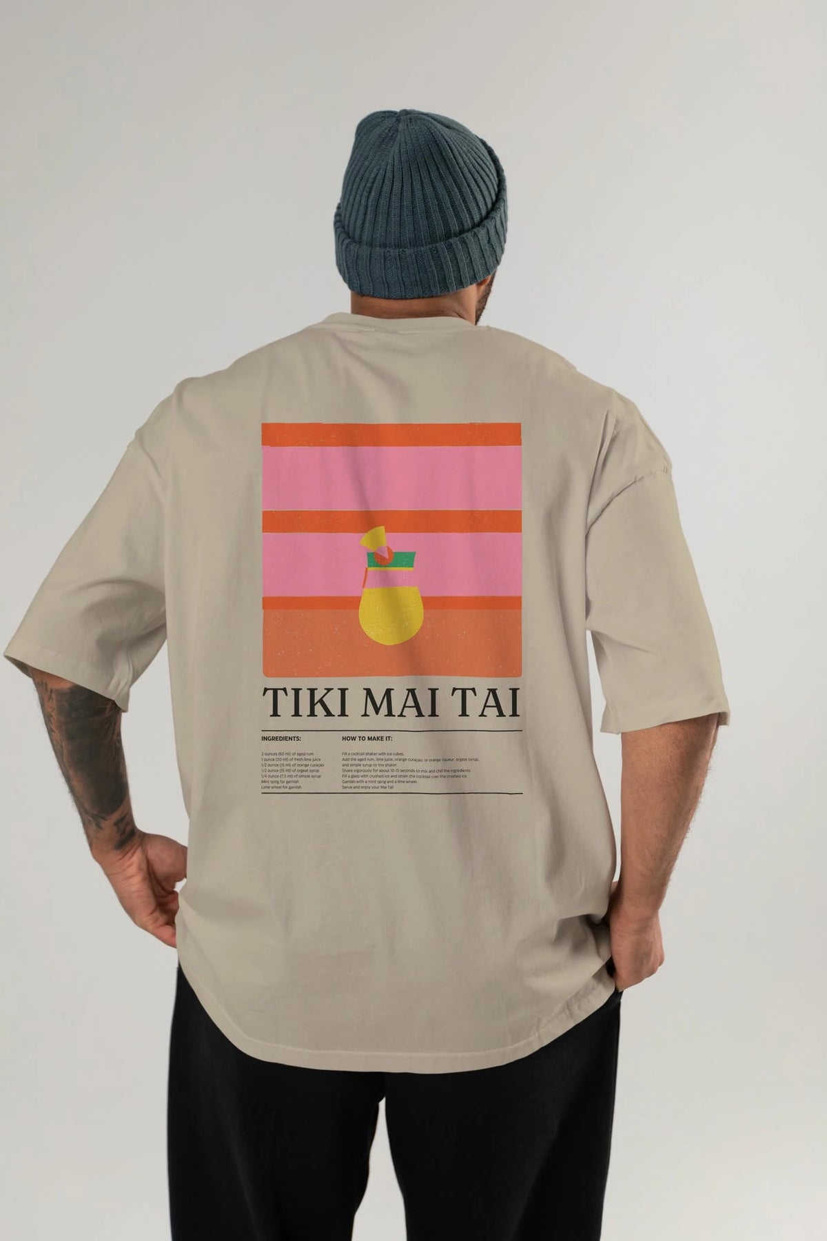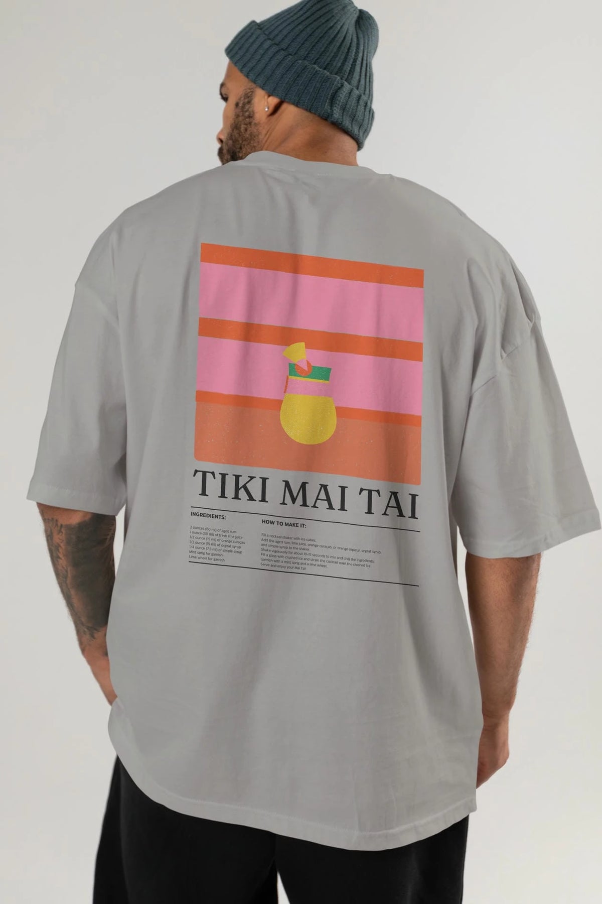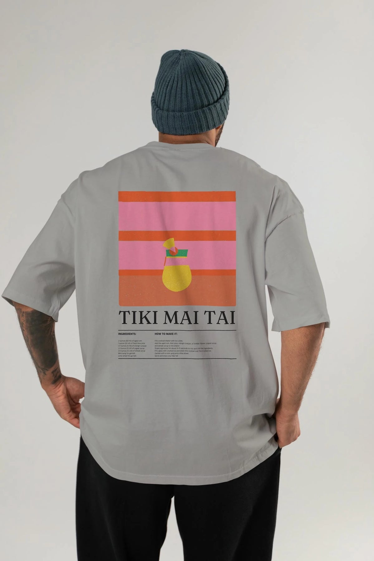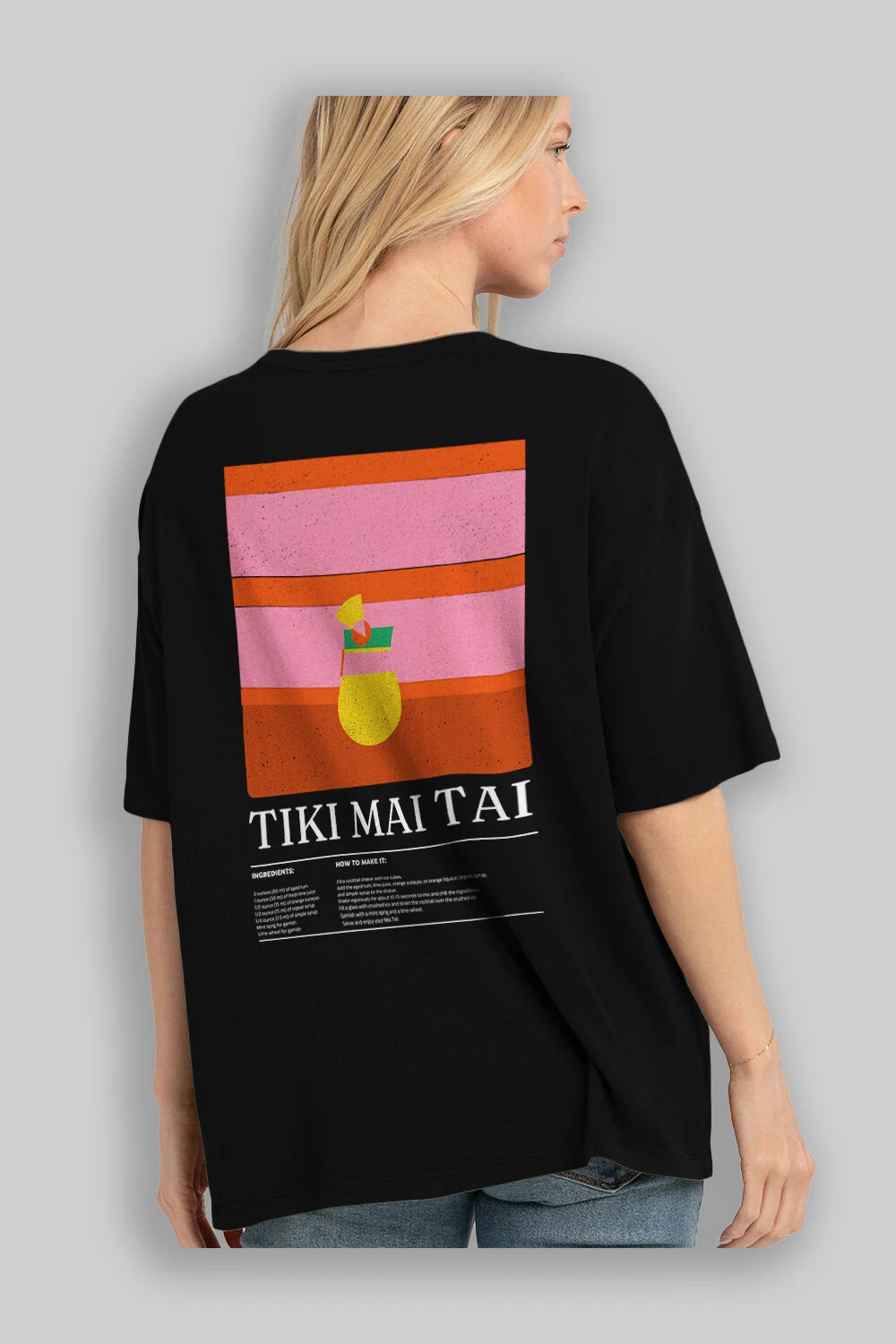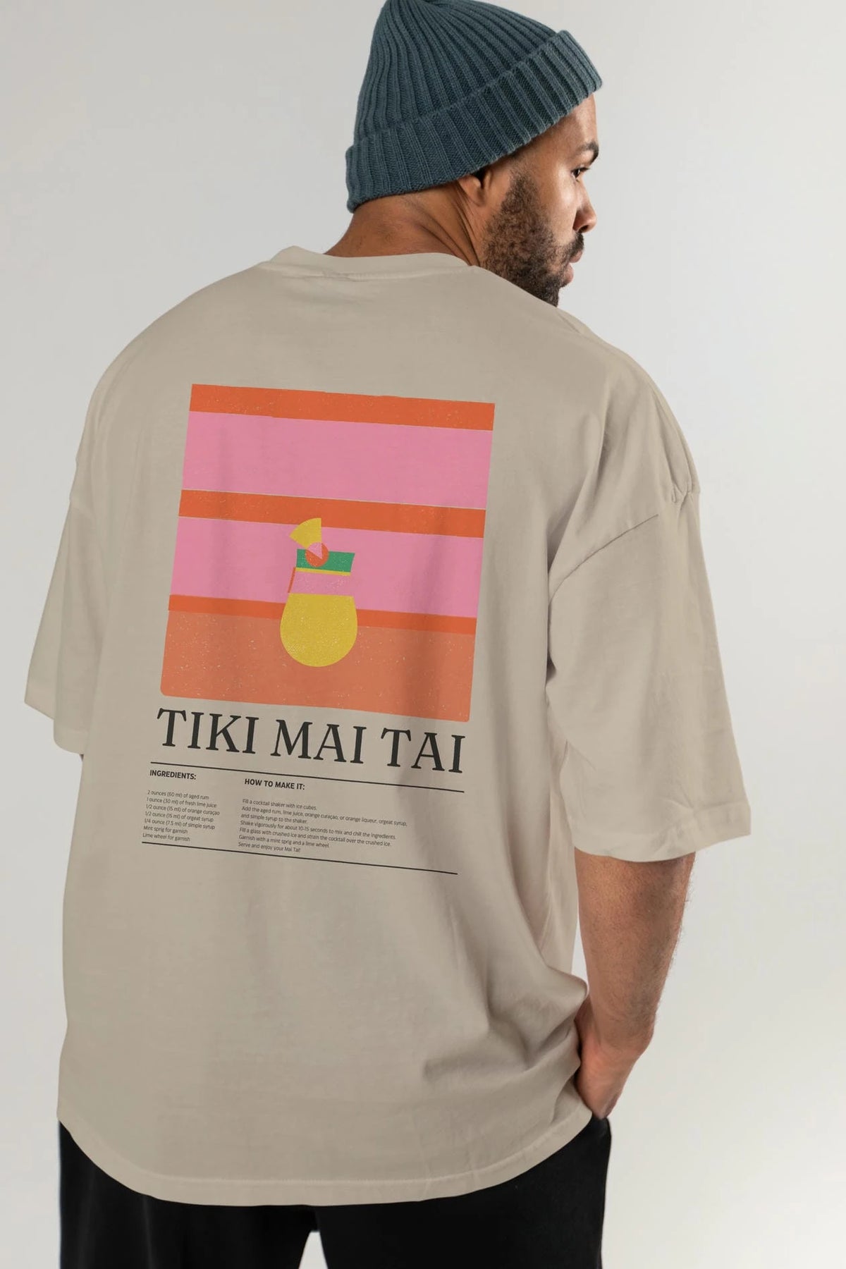 Tiki Mai Tai Kokteyl Serisi Arka Baskılı Oversize t-shirt Erkek Kadın %100 Pamuk Bisiklet Yaka tişort