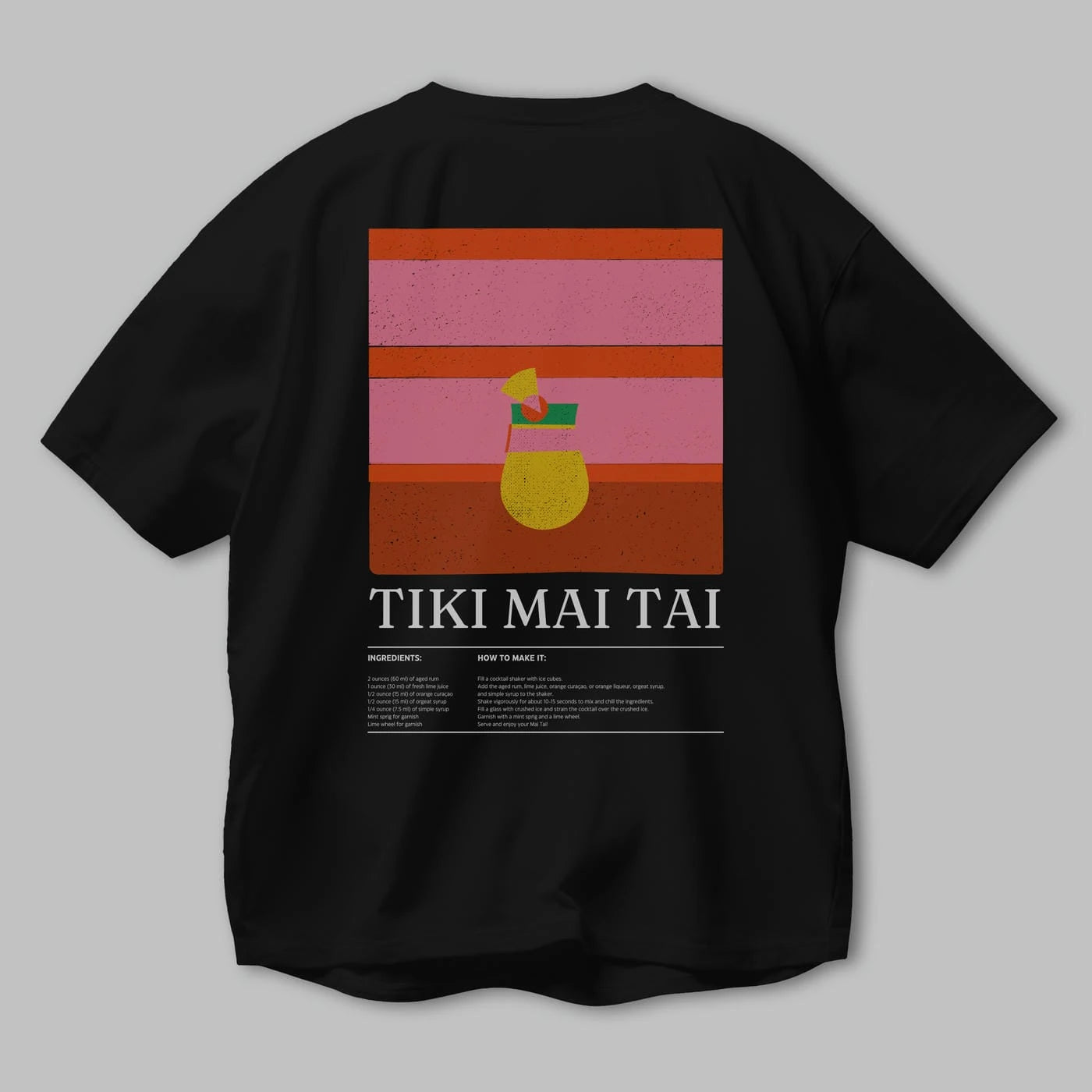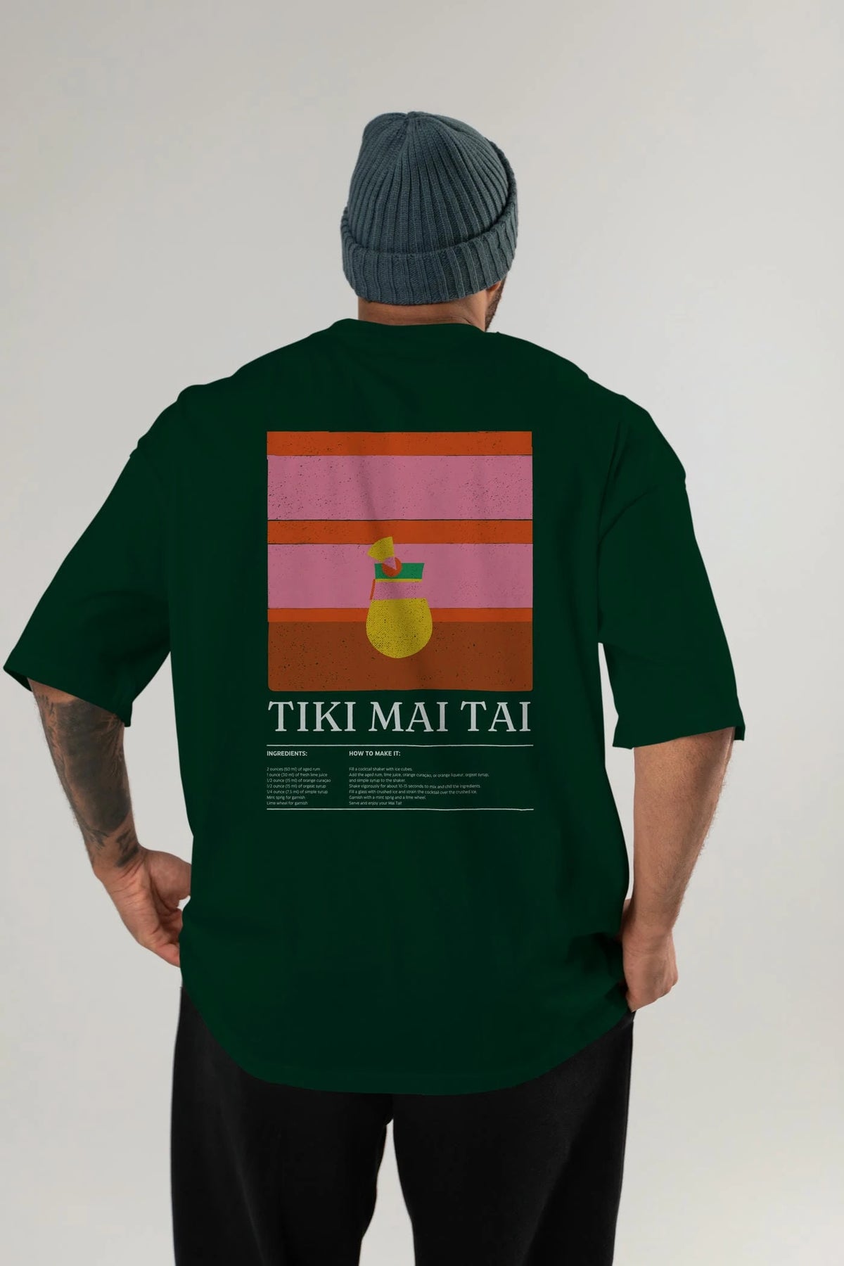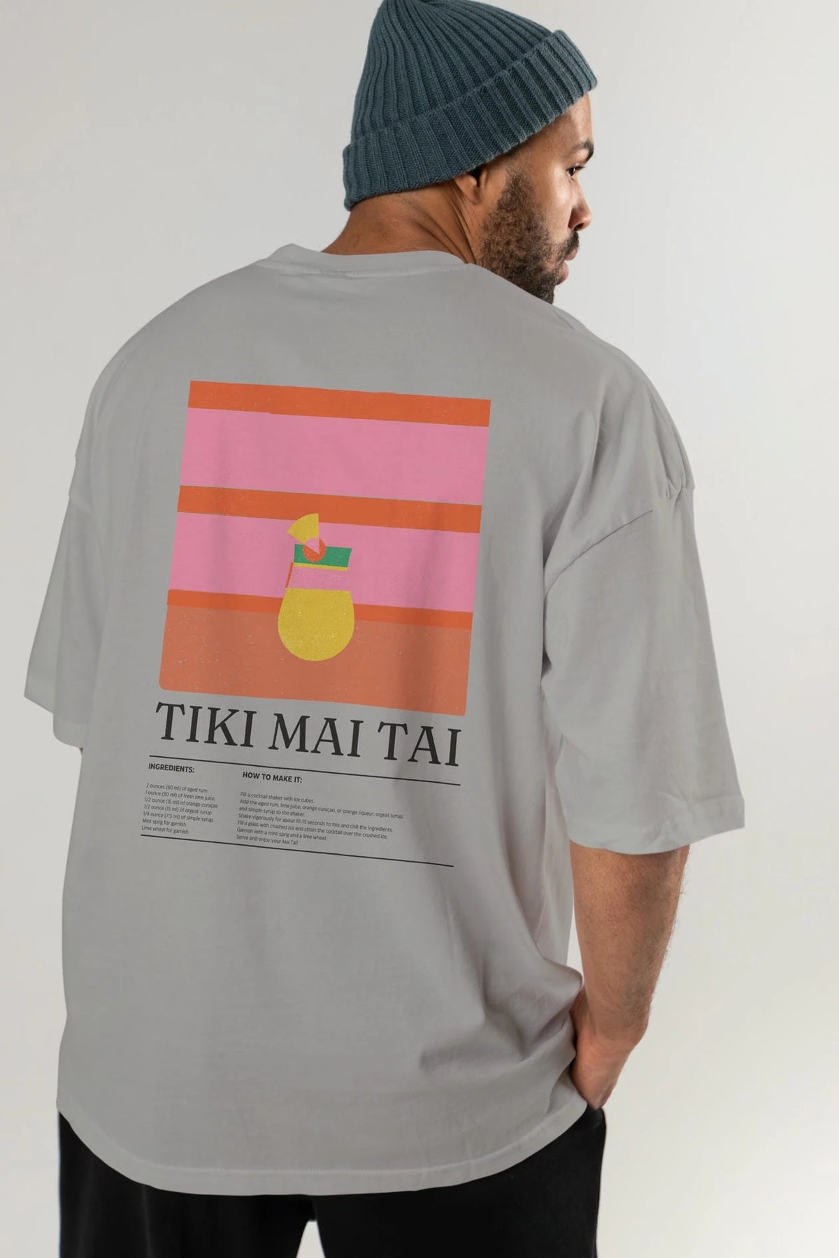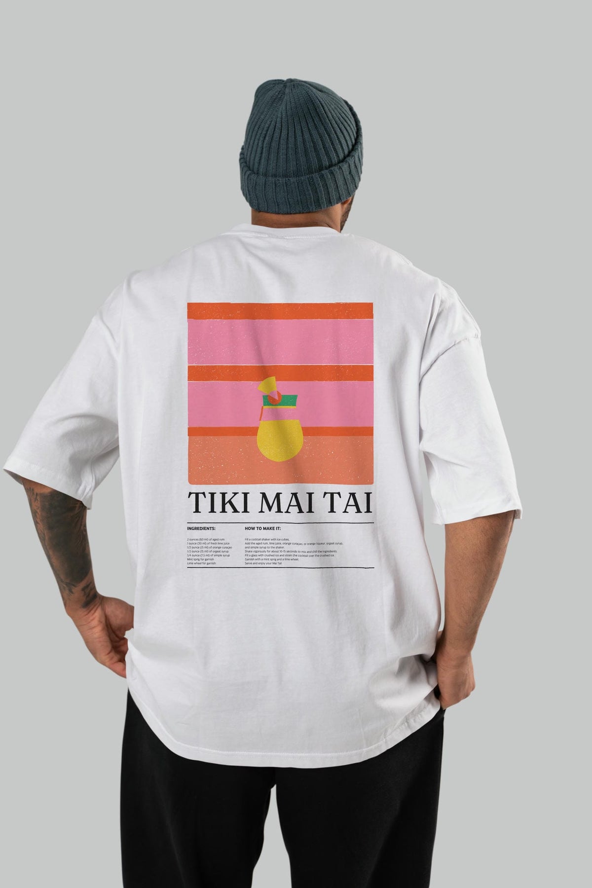Tiki Mai Tai Kokteyl Serisi Arka Baskılı Oversize t-shirt Erkek Kadın %100 Pamuk Bisiklet Yaka tişort