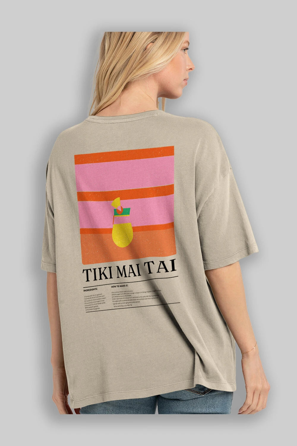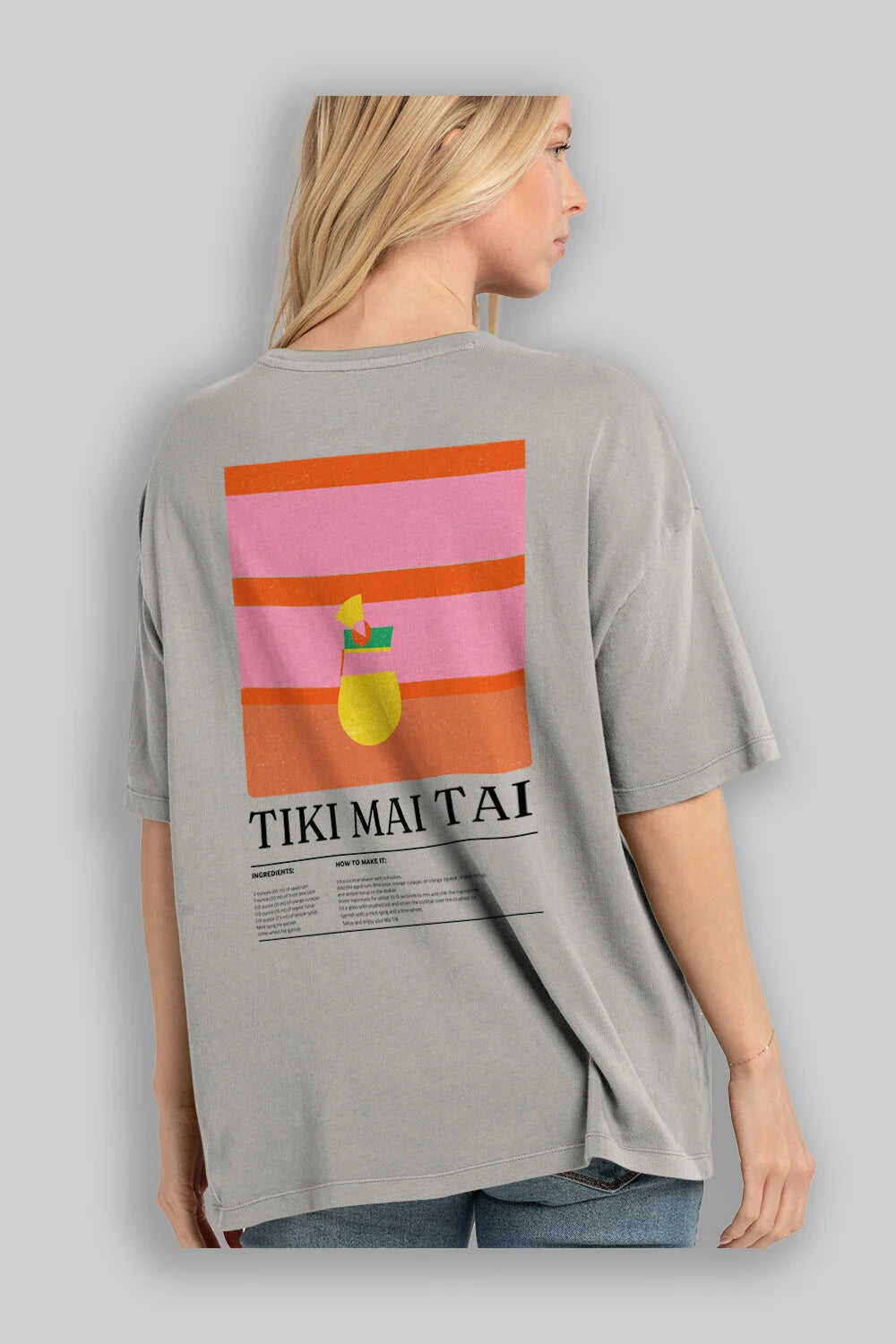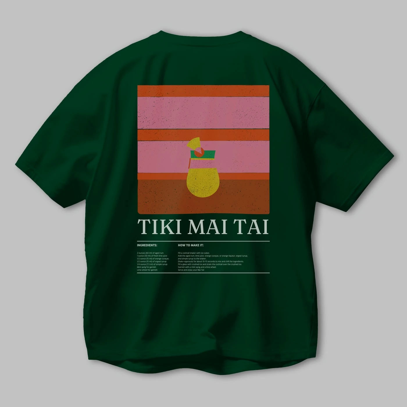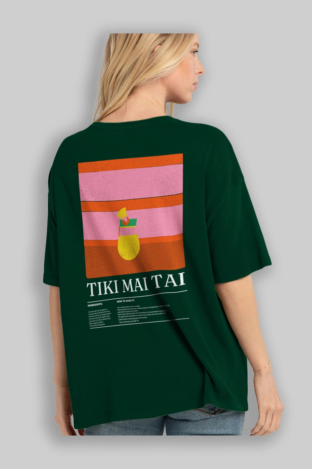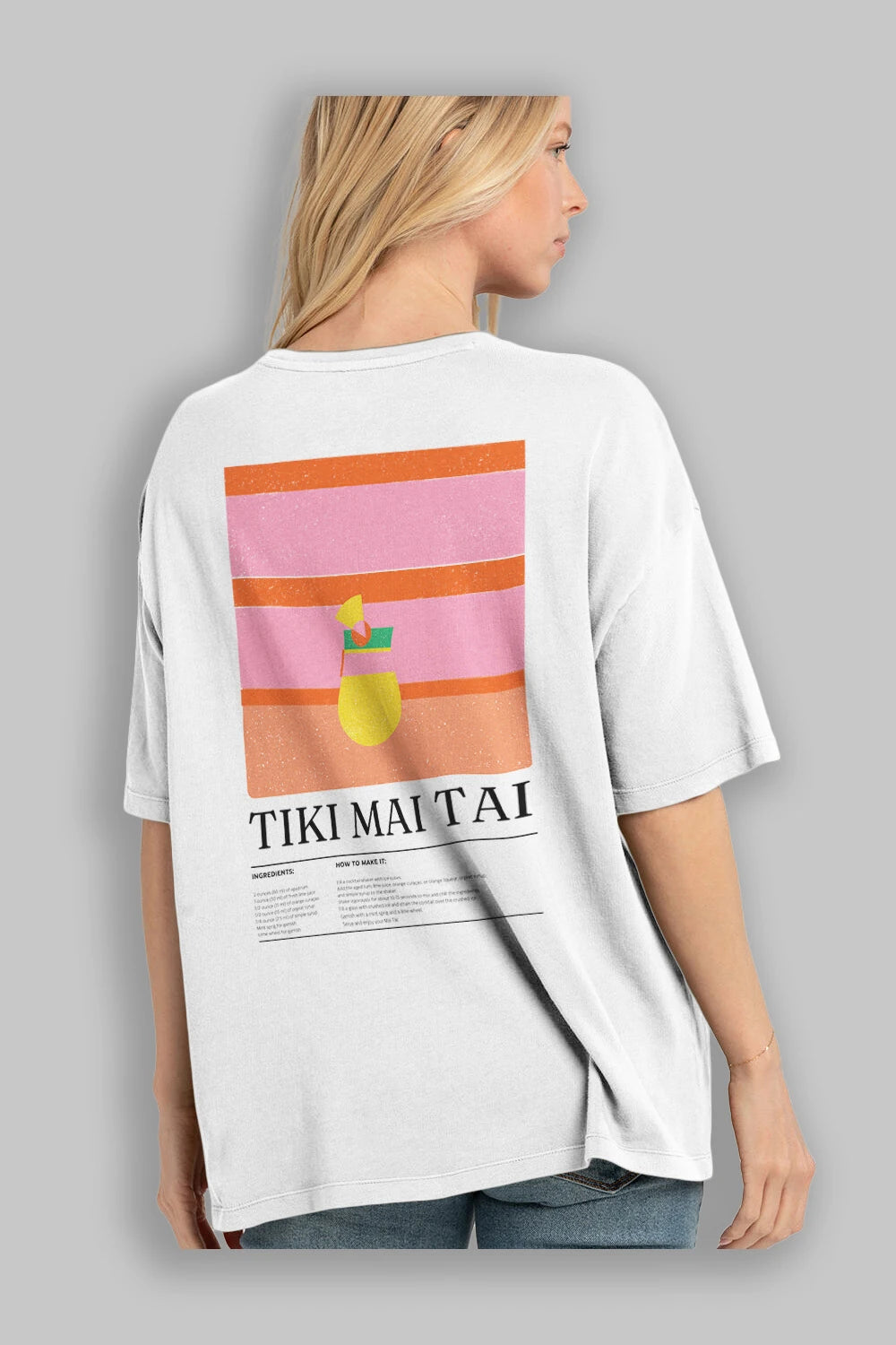 Tiki Mai Tai Kokteyl Serisi Arka Baskılı Oversize t-shirt Erkek Kadın %100 Pamuk Bisiklet Yaka tişort