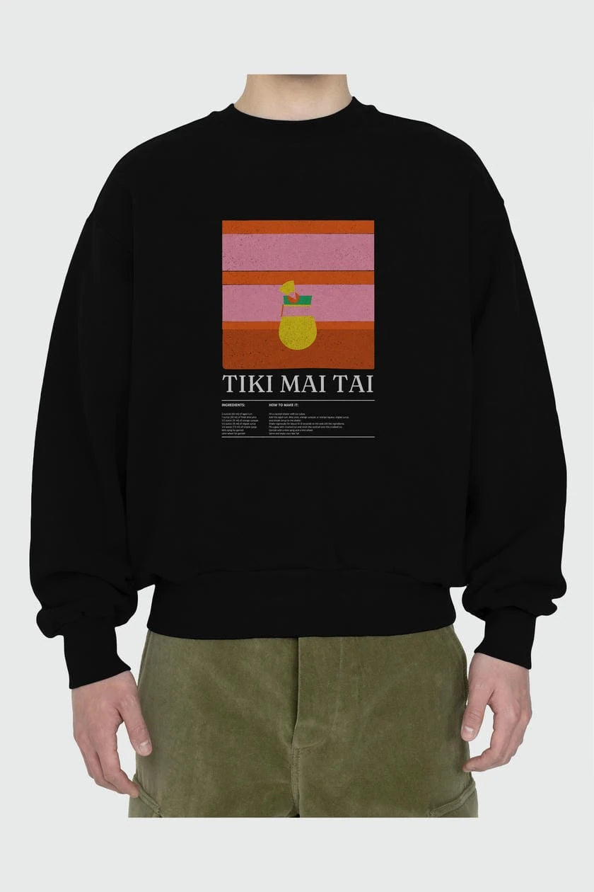 Tiki Mai Tai ön Baskılı Oversize Sweatshirt Erkek Kadın Unisex
