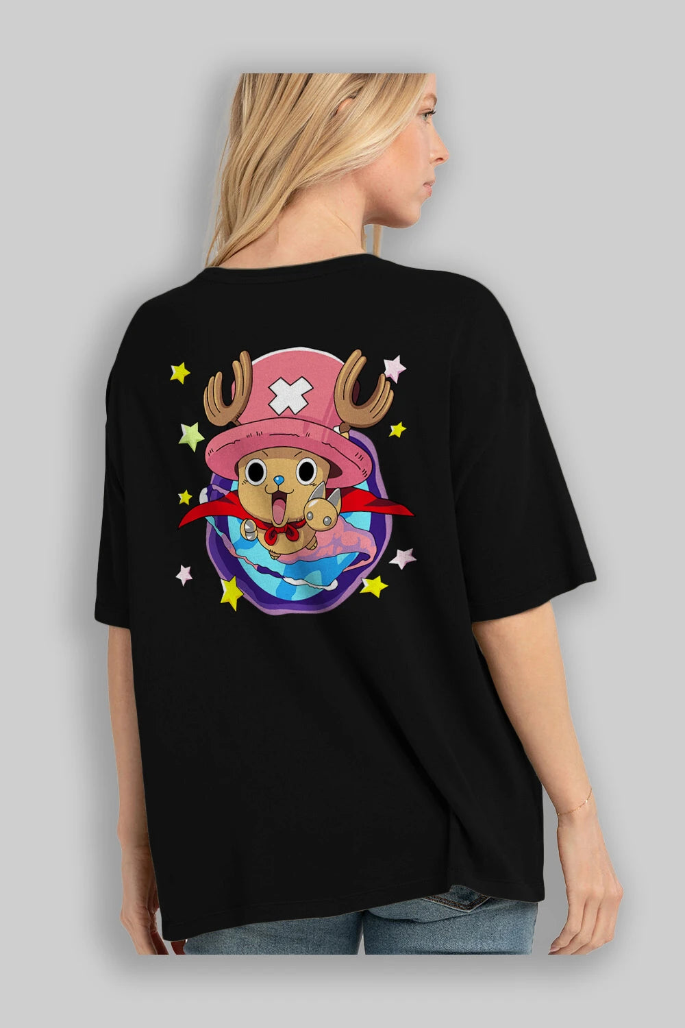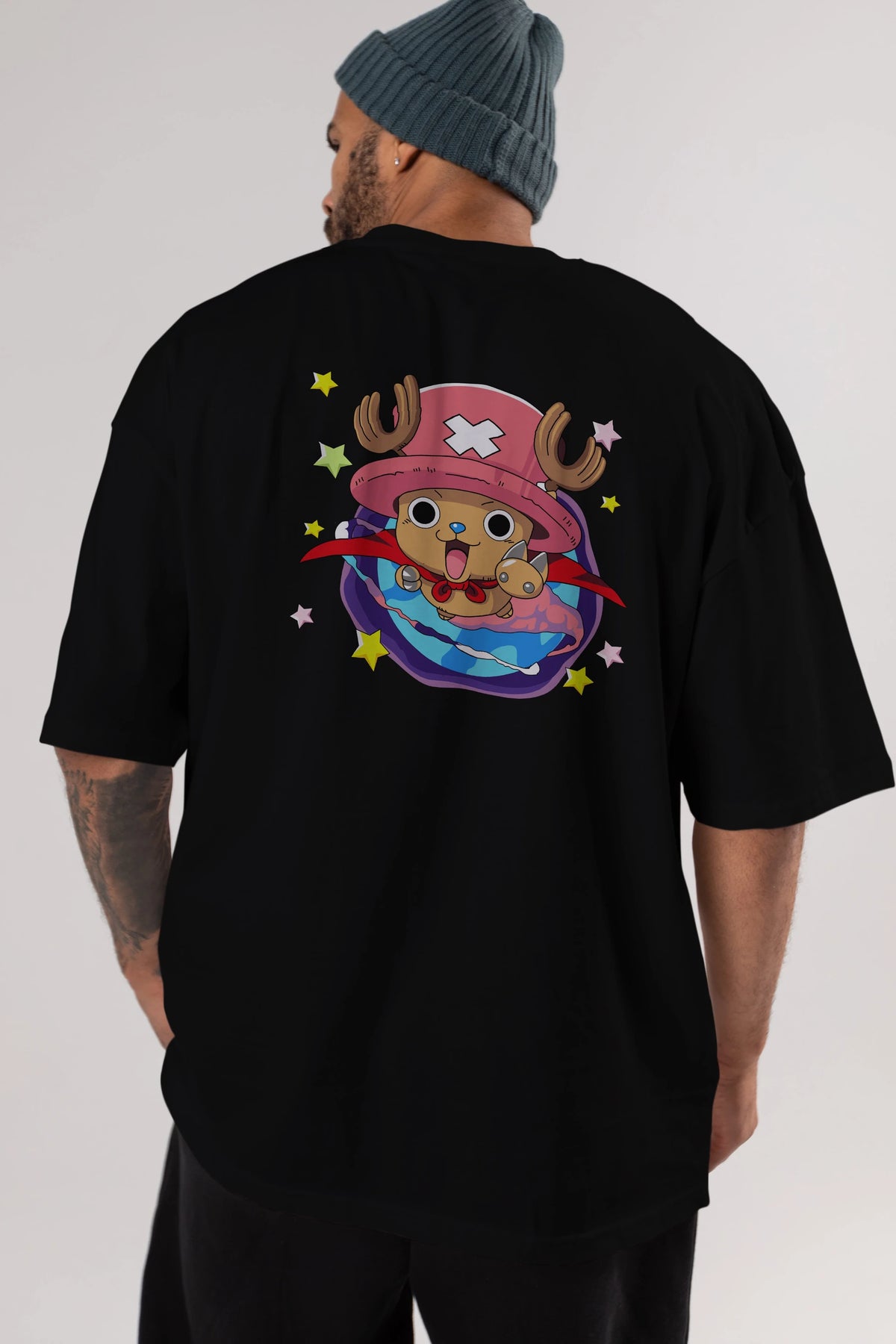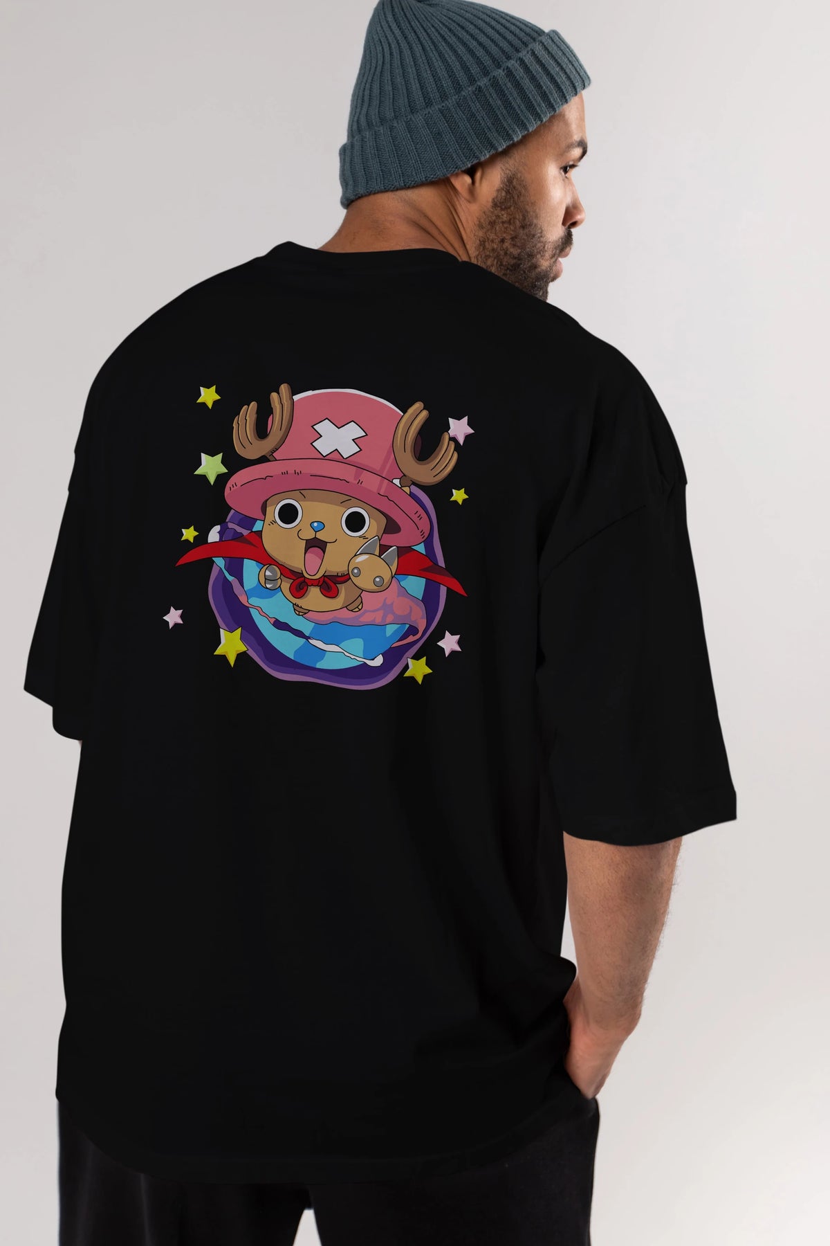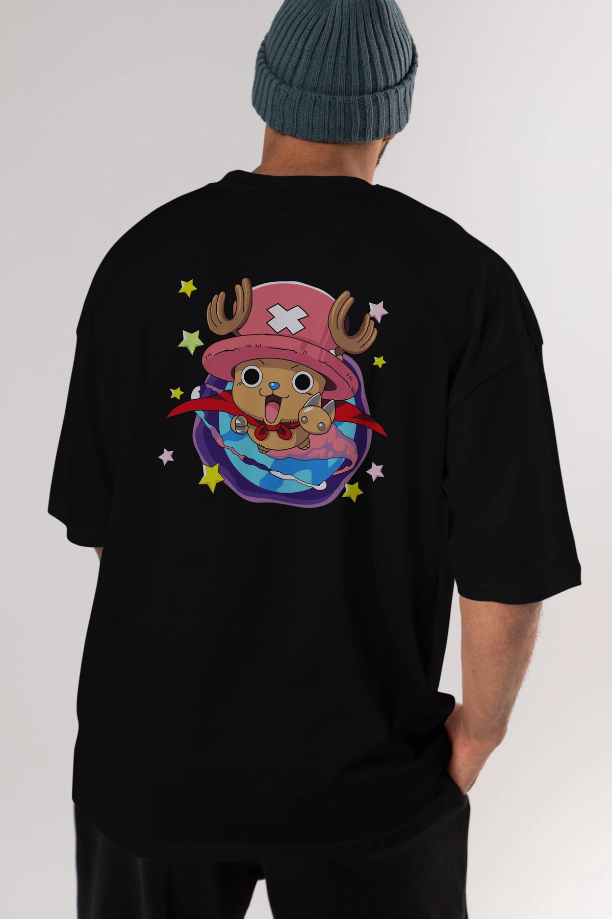 Tony Tony Chopper Anime Arka Baskılı Oversize t-shirt Erkek Kadın Unisex %100 pamuk tişort