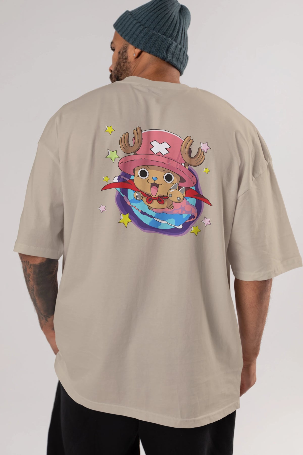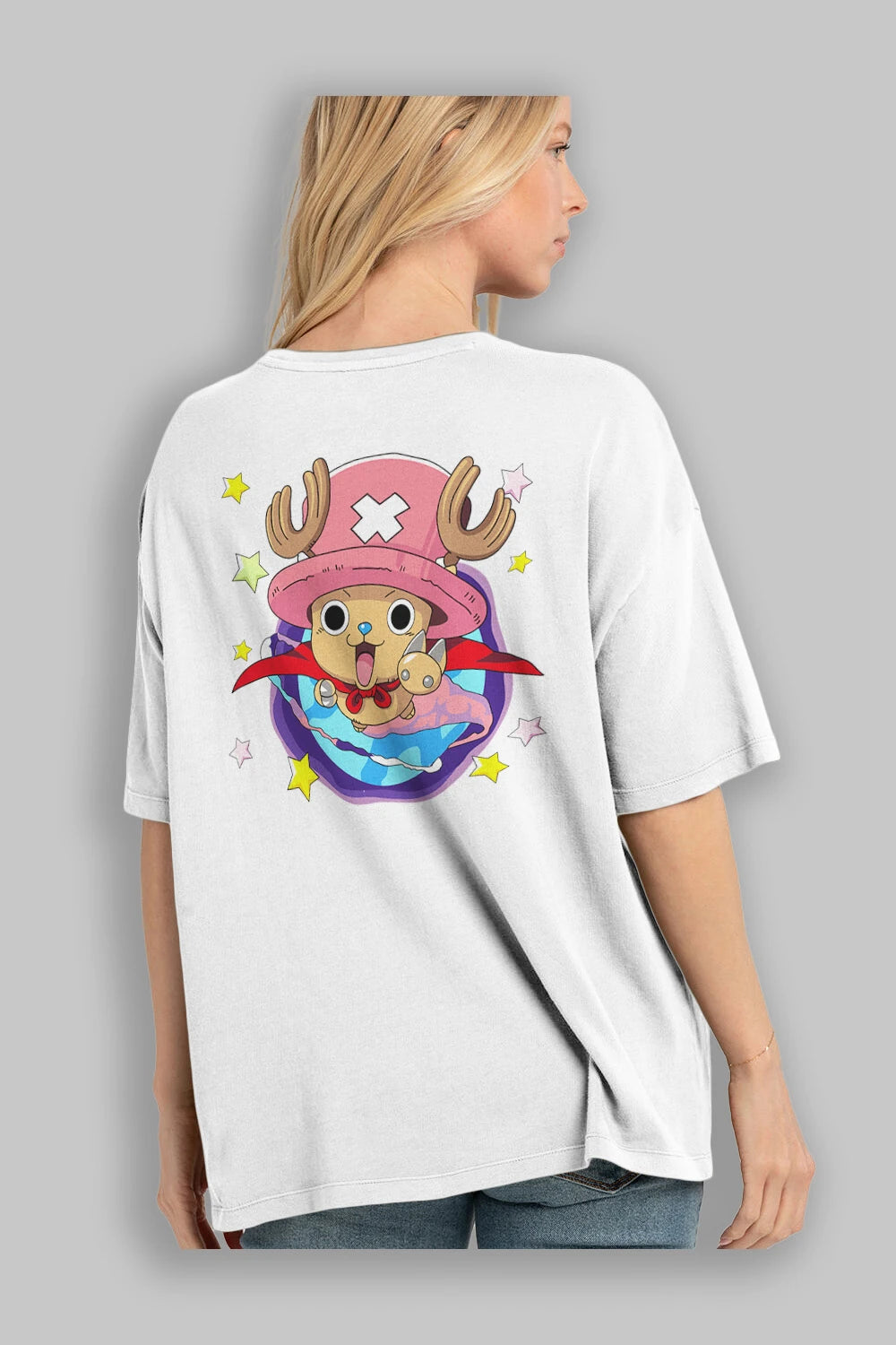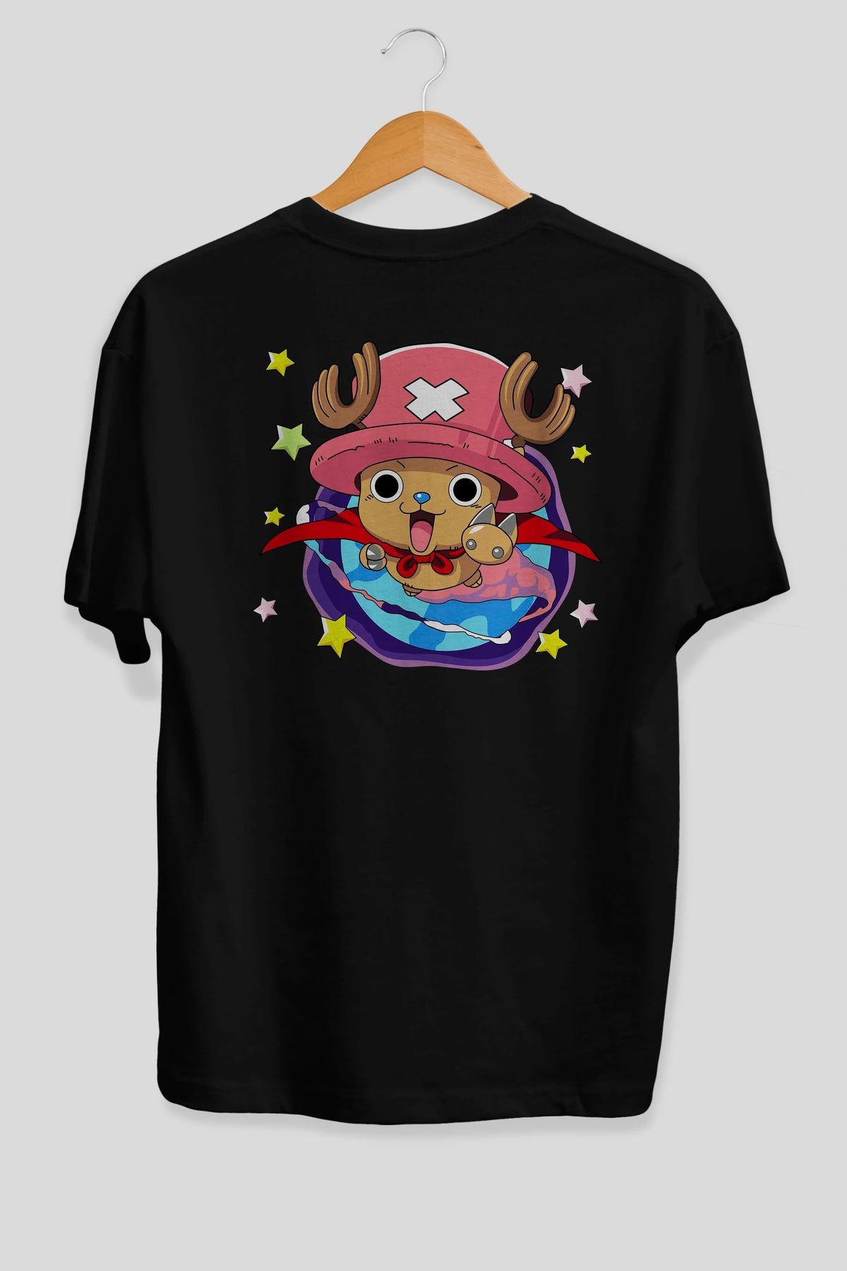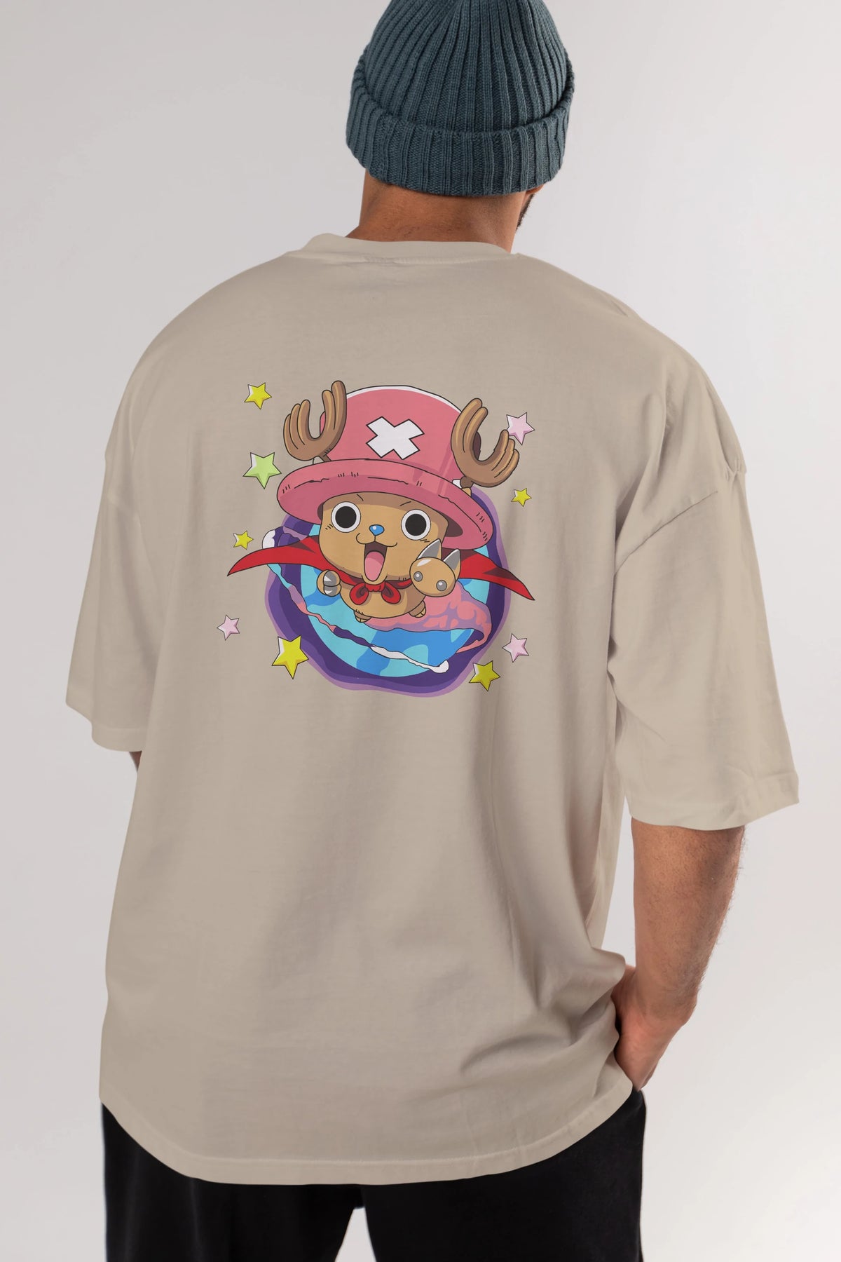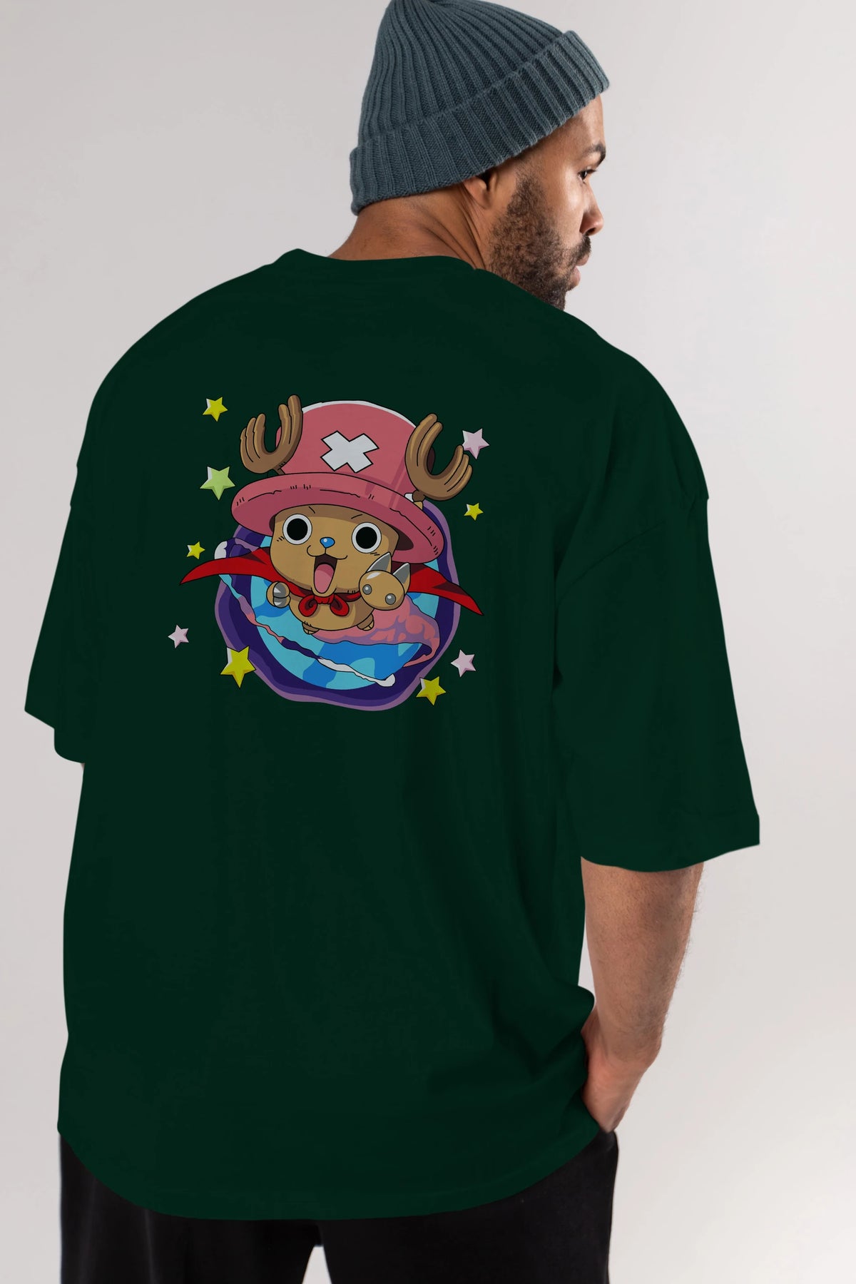 Tony Tony Chopper Anime Arka Baskılı Oversize t-shirt Erkek Kadın Unisex %100 pamuk tişort