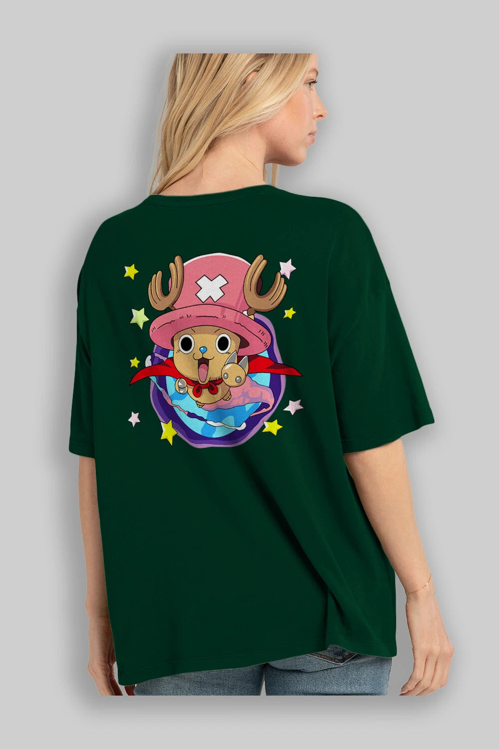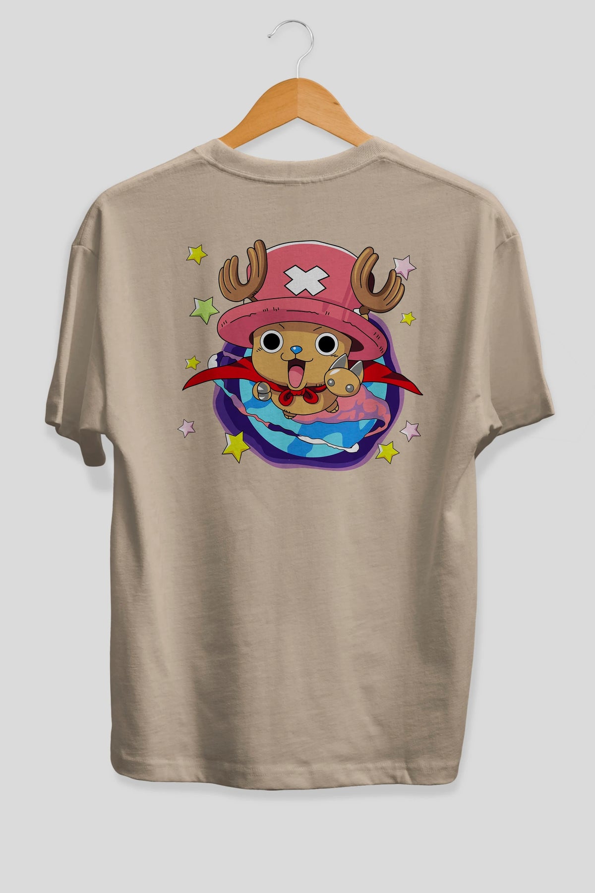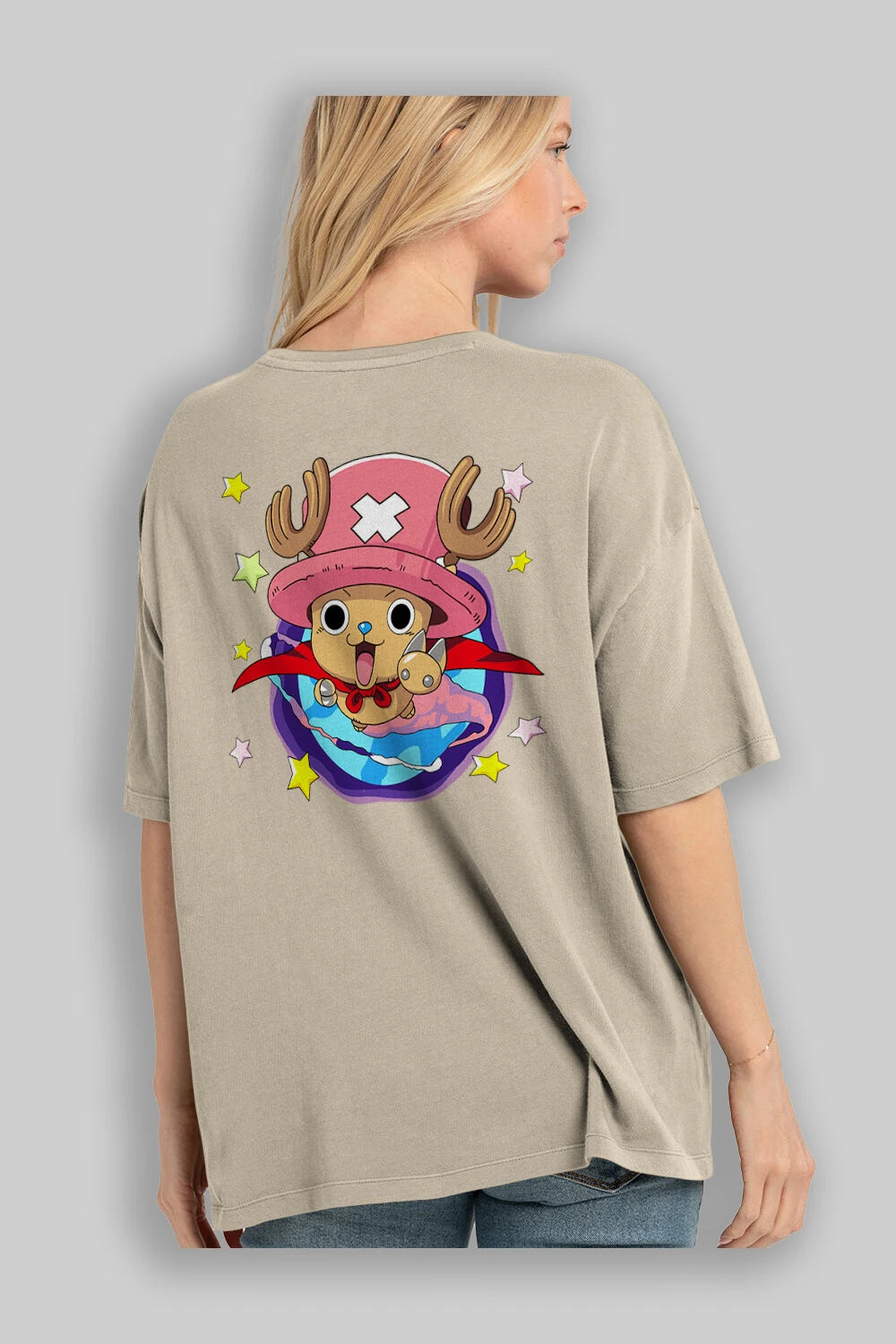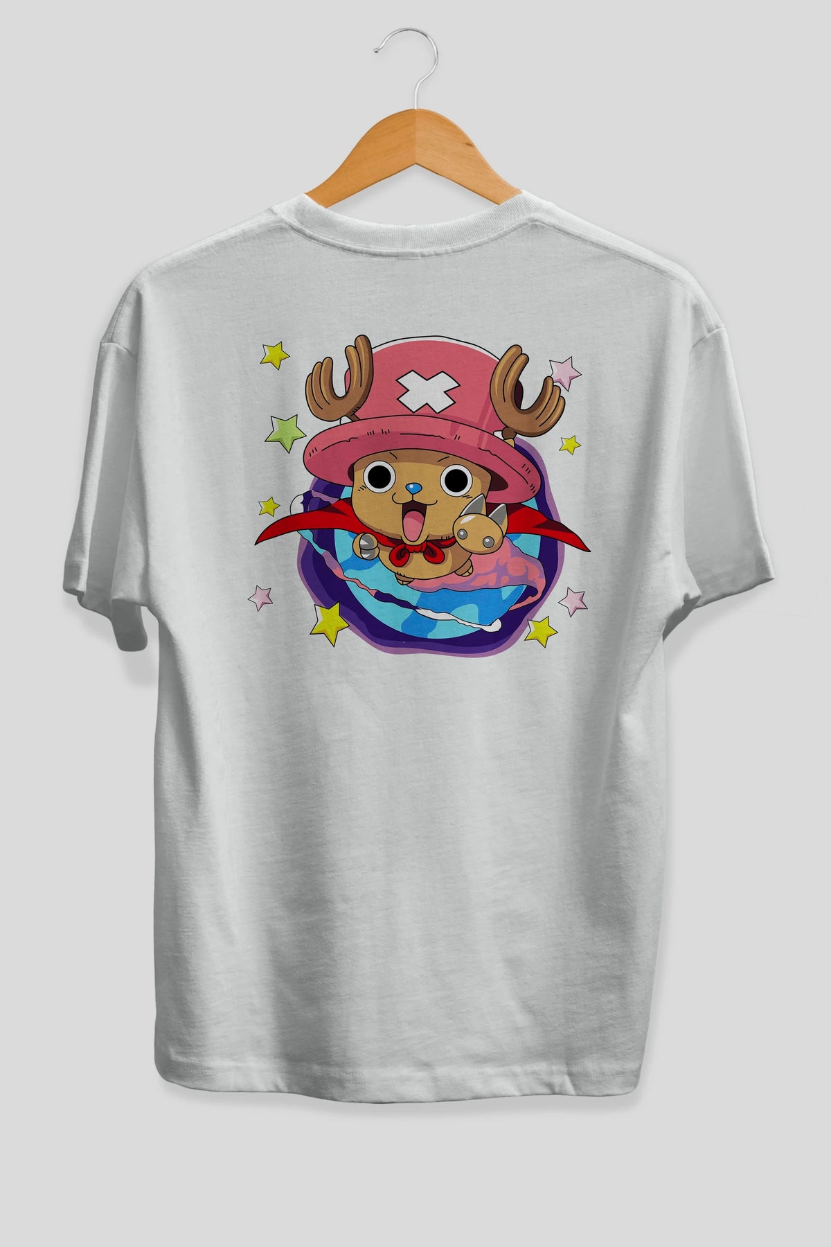 Tony Tony Chopper Anime Arka Baskılı Oversize t-shirt Erkek Kadın Unisex %100 pamuk tişort