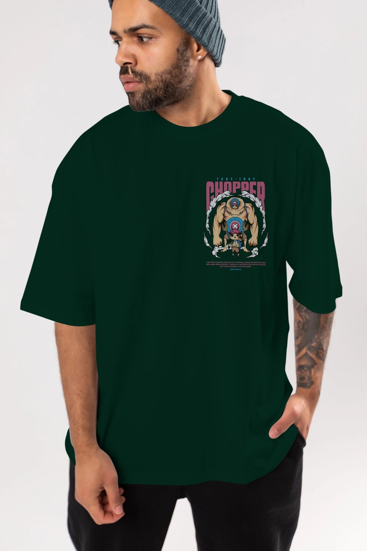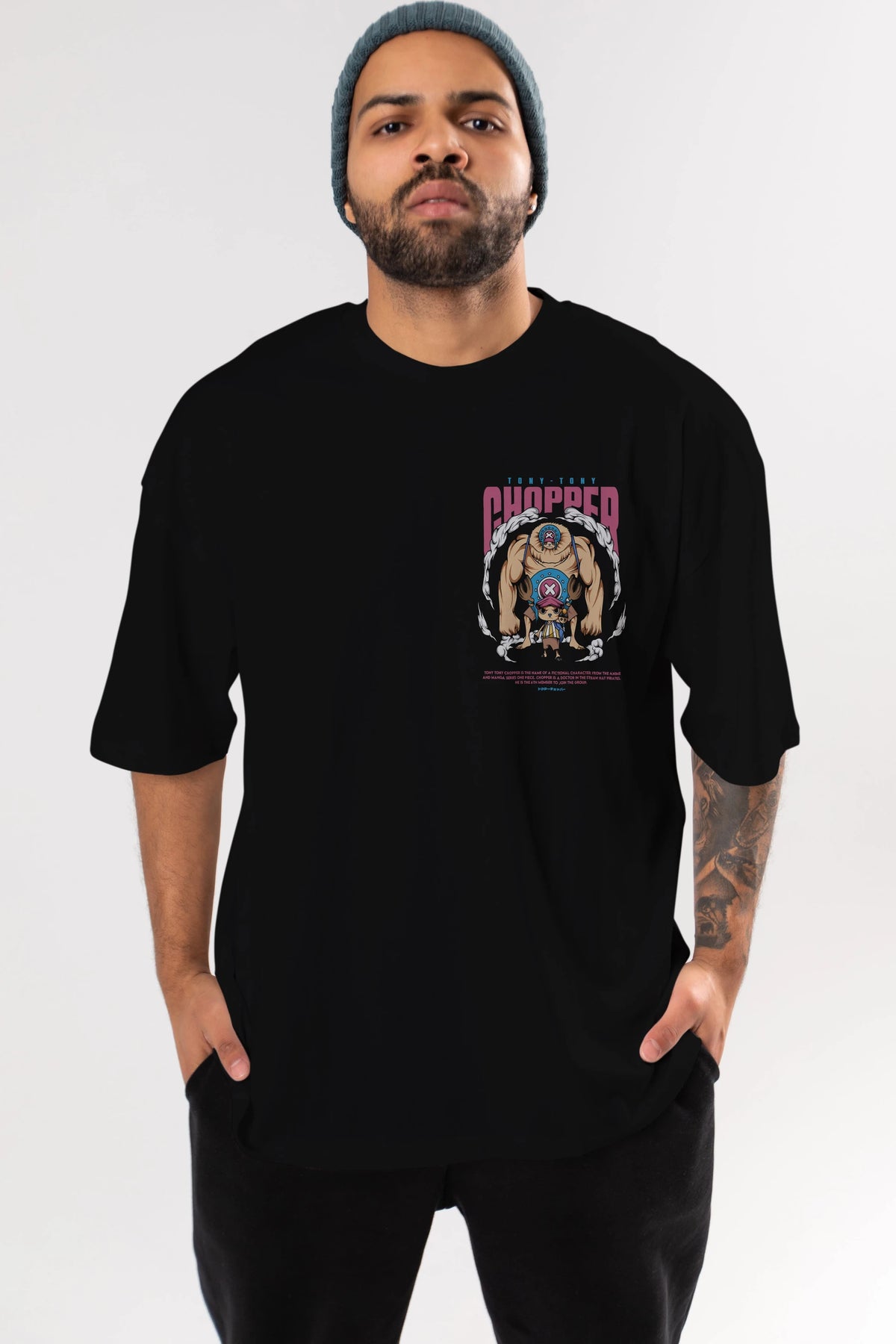 Tony Tony Chopper Ön Sol Baskılı Oversize t-shirt Erkek Kadın Unisex %100 Pamuk Bisiklet Yaka tişort