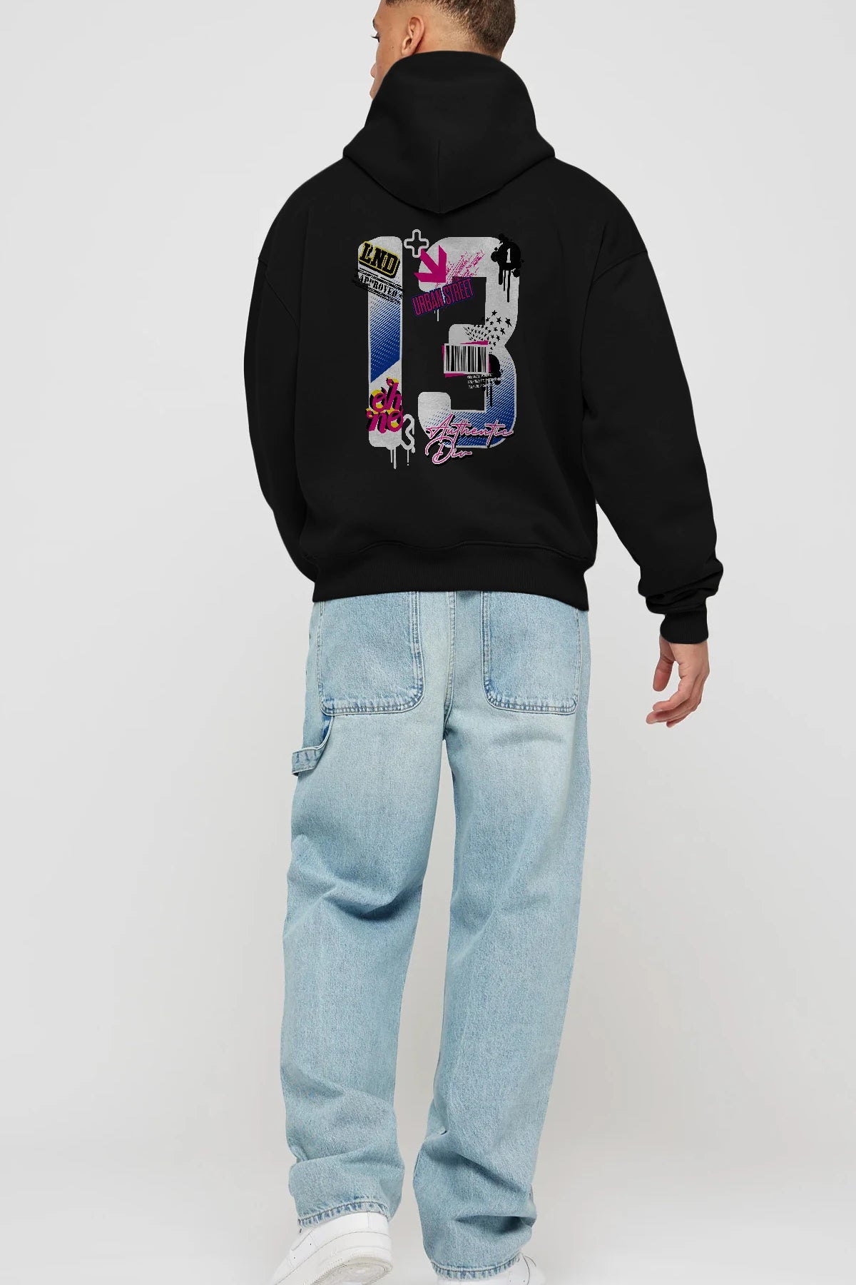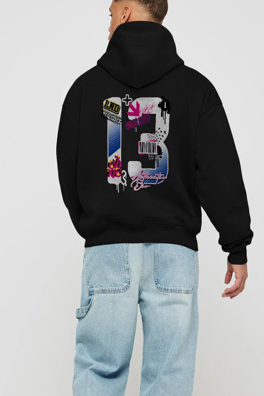 Urban Street 13 Arka Baskılı Hoodie Oversize Kapüşonlu Sweatshirt Erkek Kadın Unisex