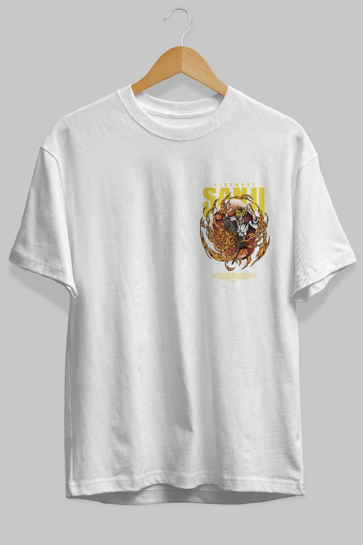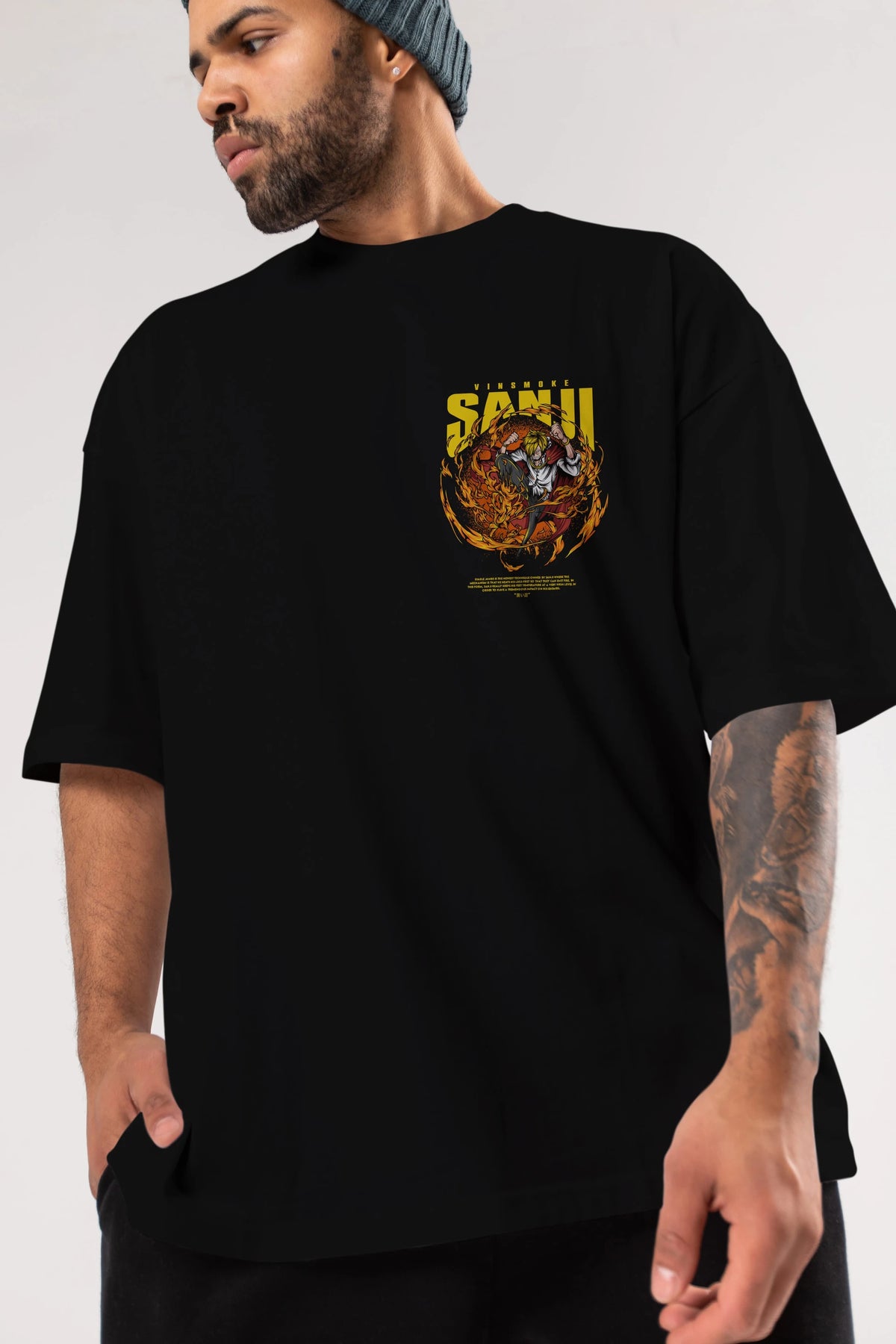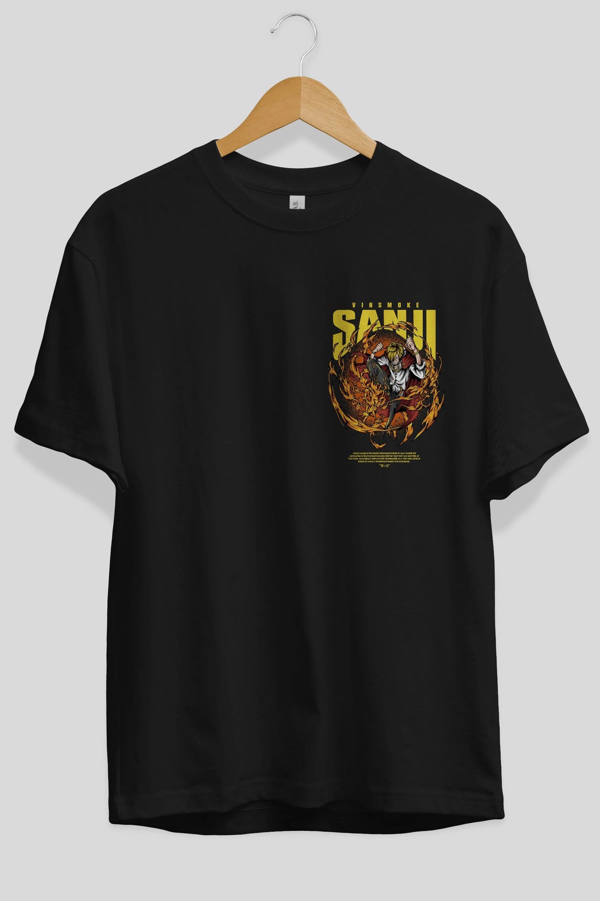 Vinsmoke Sanji Ön Sol Baskılı Oversize t-shirt Erkek Kadın Unisex %100 Pamuk Bisiklet Yaka tişort