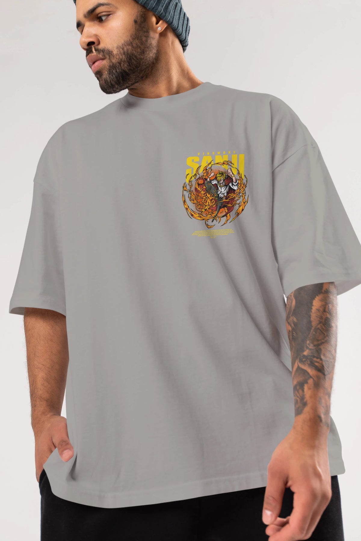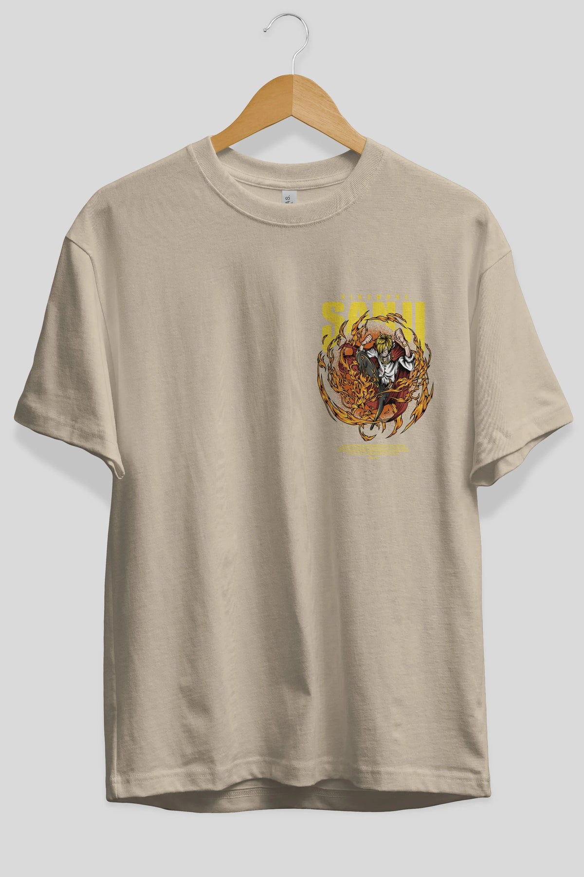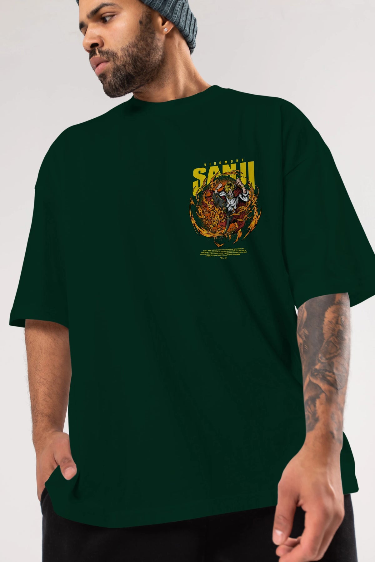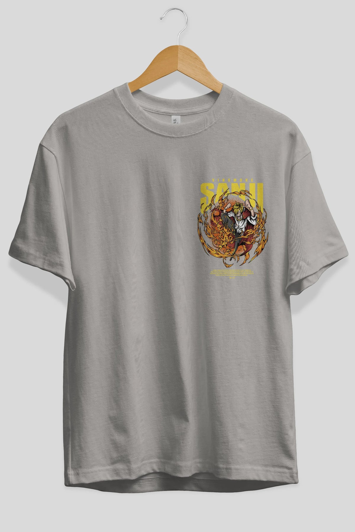 Vinsmoke Sanji Ön Sol Baskılı Oversize t-shirt Erkek Kadın Unisex %100 Pamuk Bisiklet Yaka tişort