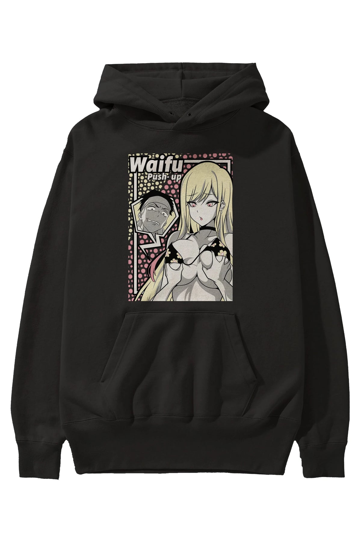 Waifu PushUp Anime Ön Baskılı Hoodie Oversize Kapüşonlu Sweatshirt Erkek Kadın Unisex