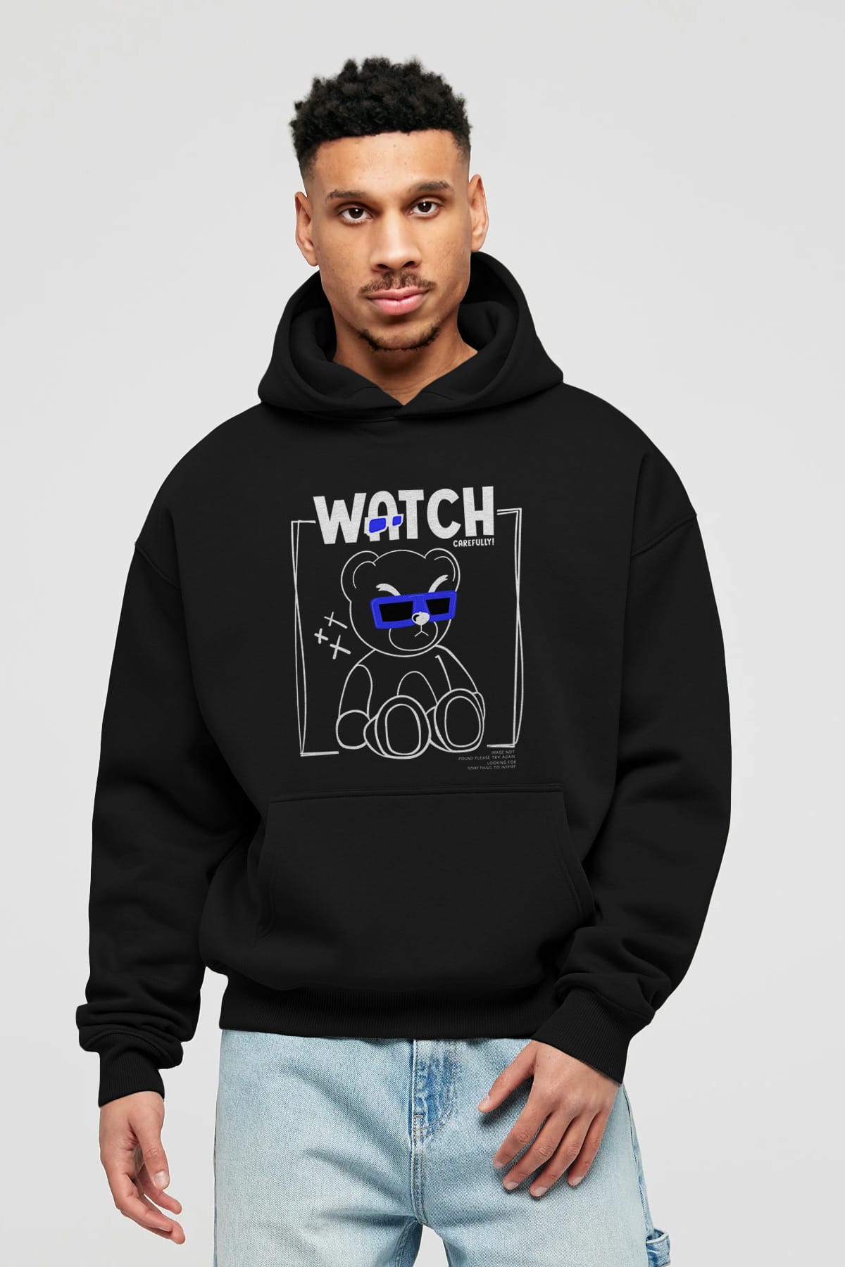 Watch Carefully Bear Ön Baskılı Hoodie Oversize Kapüşonlu Sweatshirt Erkek Kadın Unisex