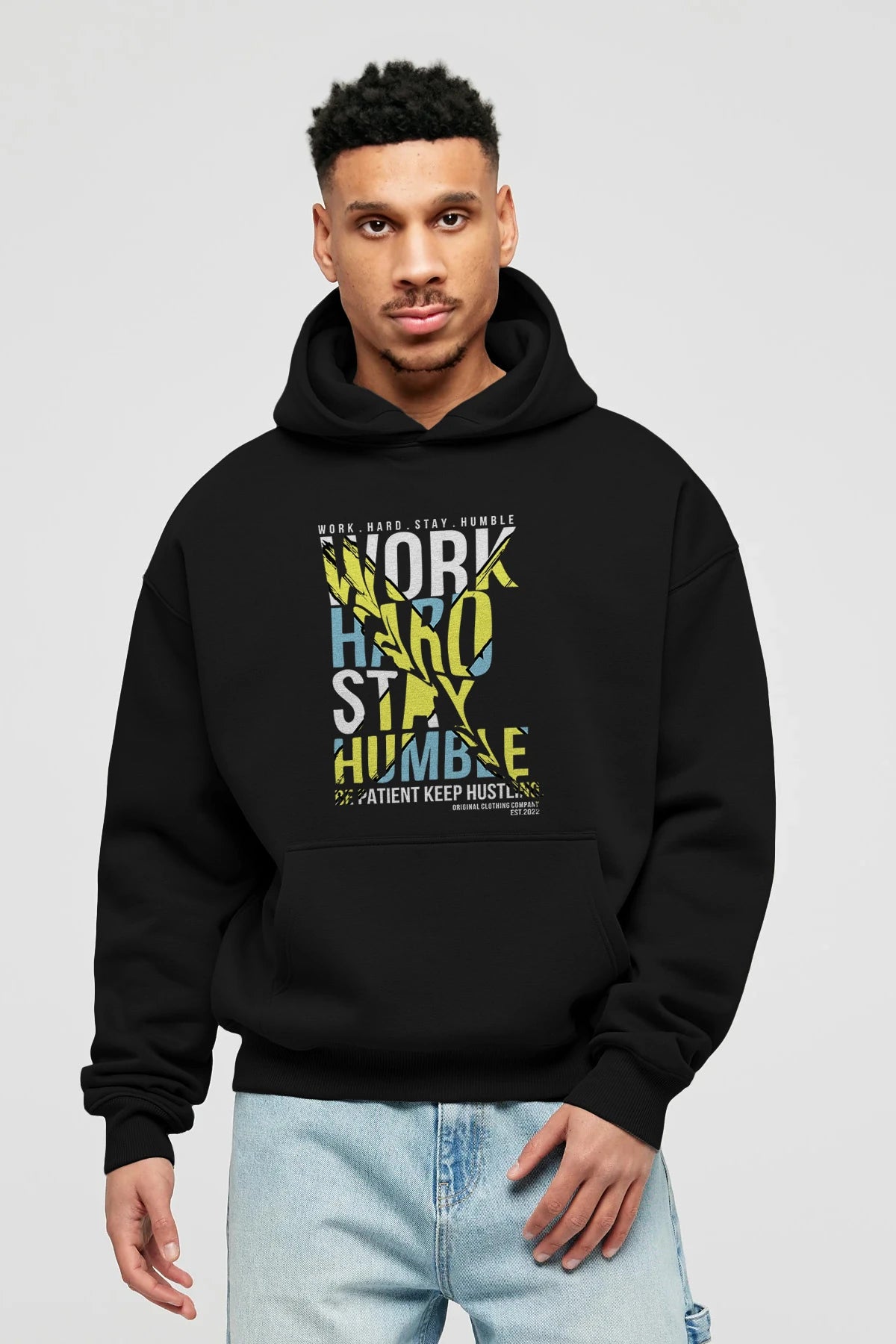 Work Hard Stay Humble Ön Baskılı Hoodie Oversize Kapüşonlu Sweatshirt Erkek Kadın Unisex