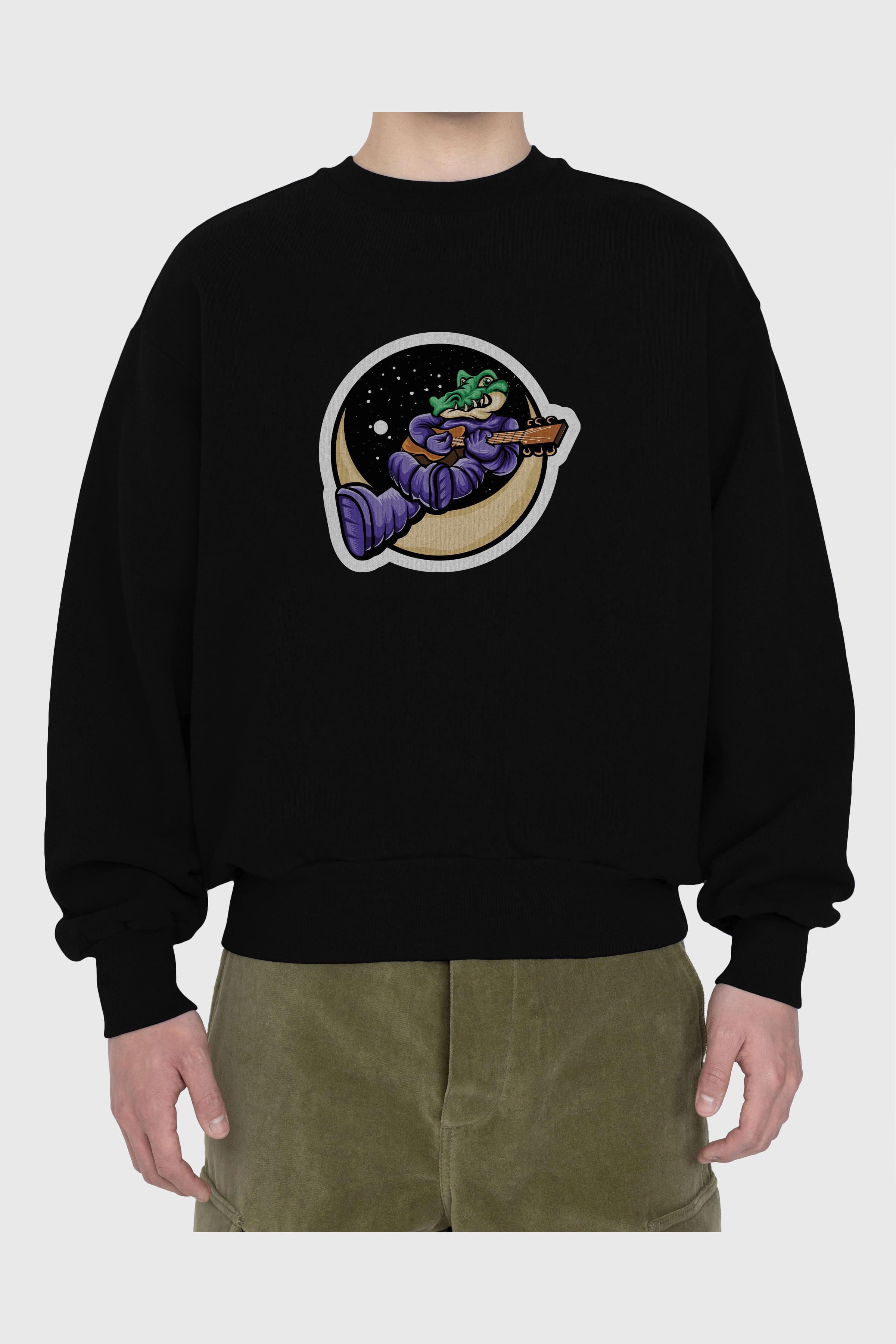 Space Crocodile Sticker Ön Baskılı Oversize Sweatshirt Erkek Kadın Unisex